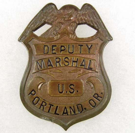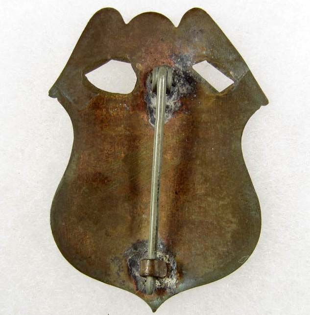 Approx. 1 11/16" by 2 7'/16" This is an eagle top badge w/ a shield below. Has a thin vertical pinback. Copper