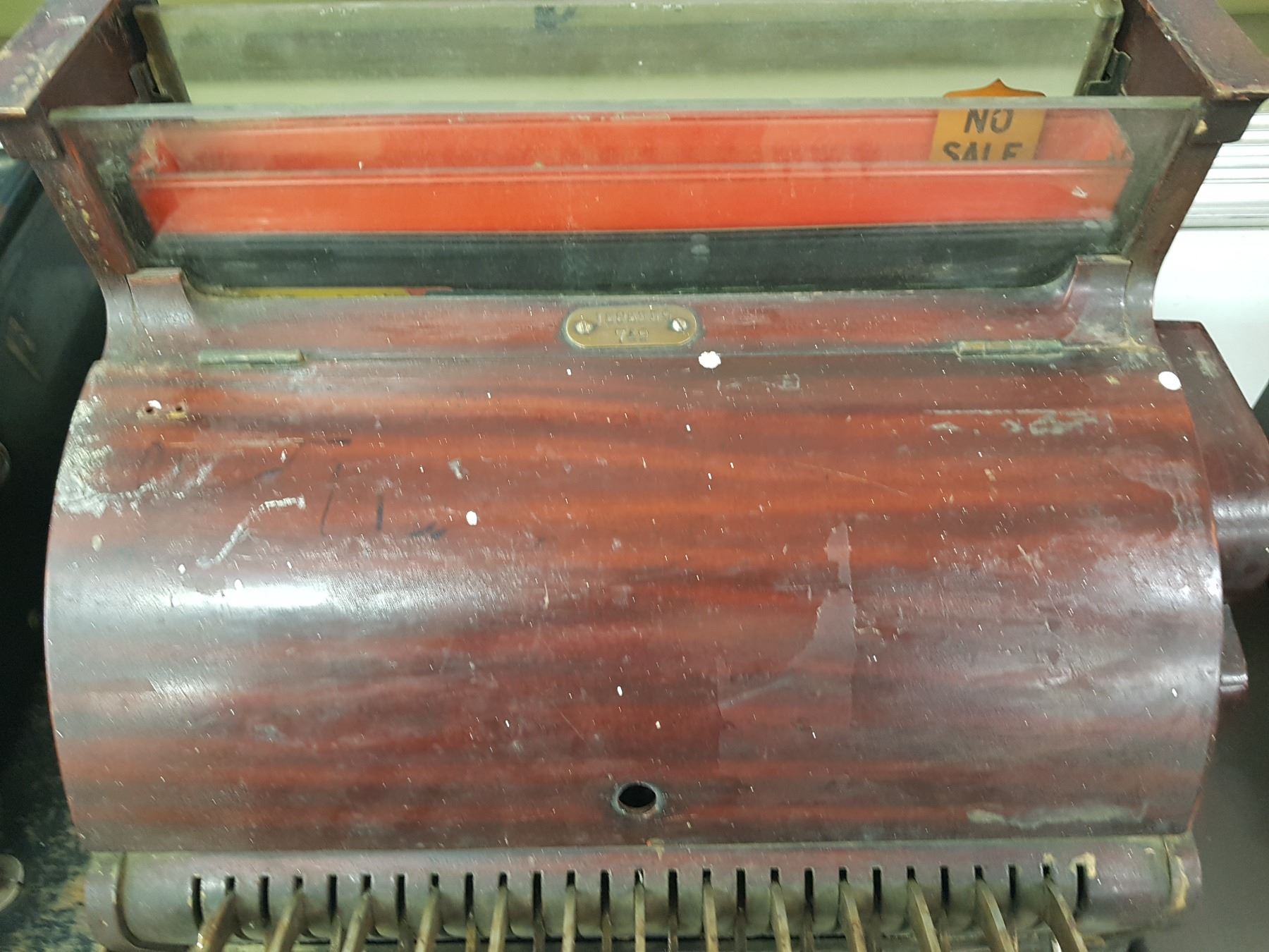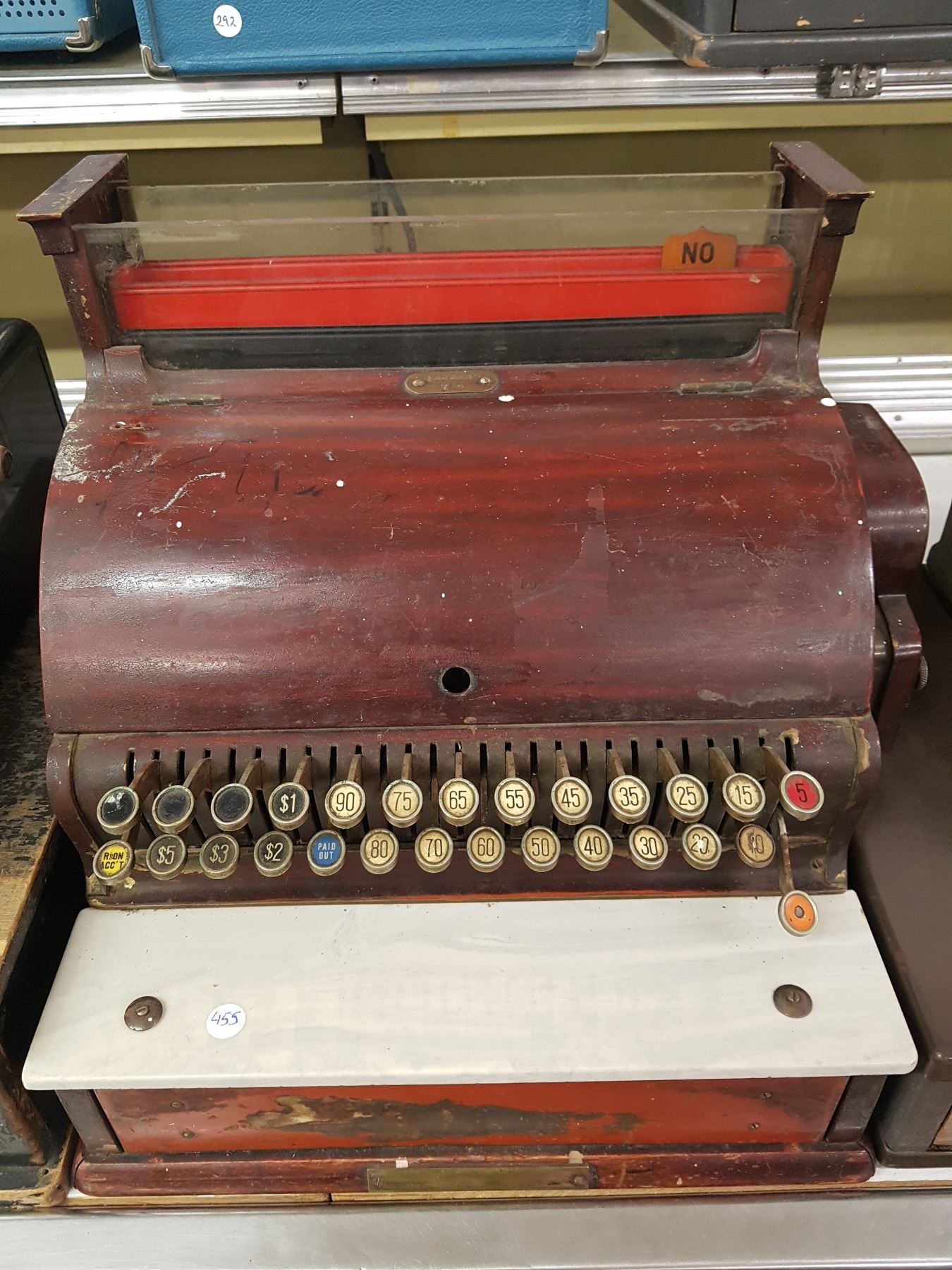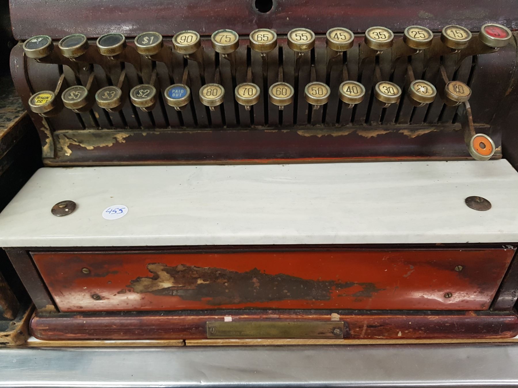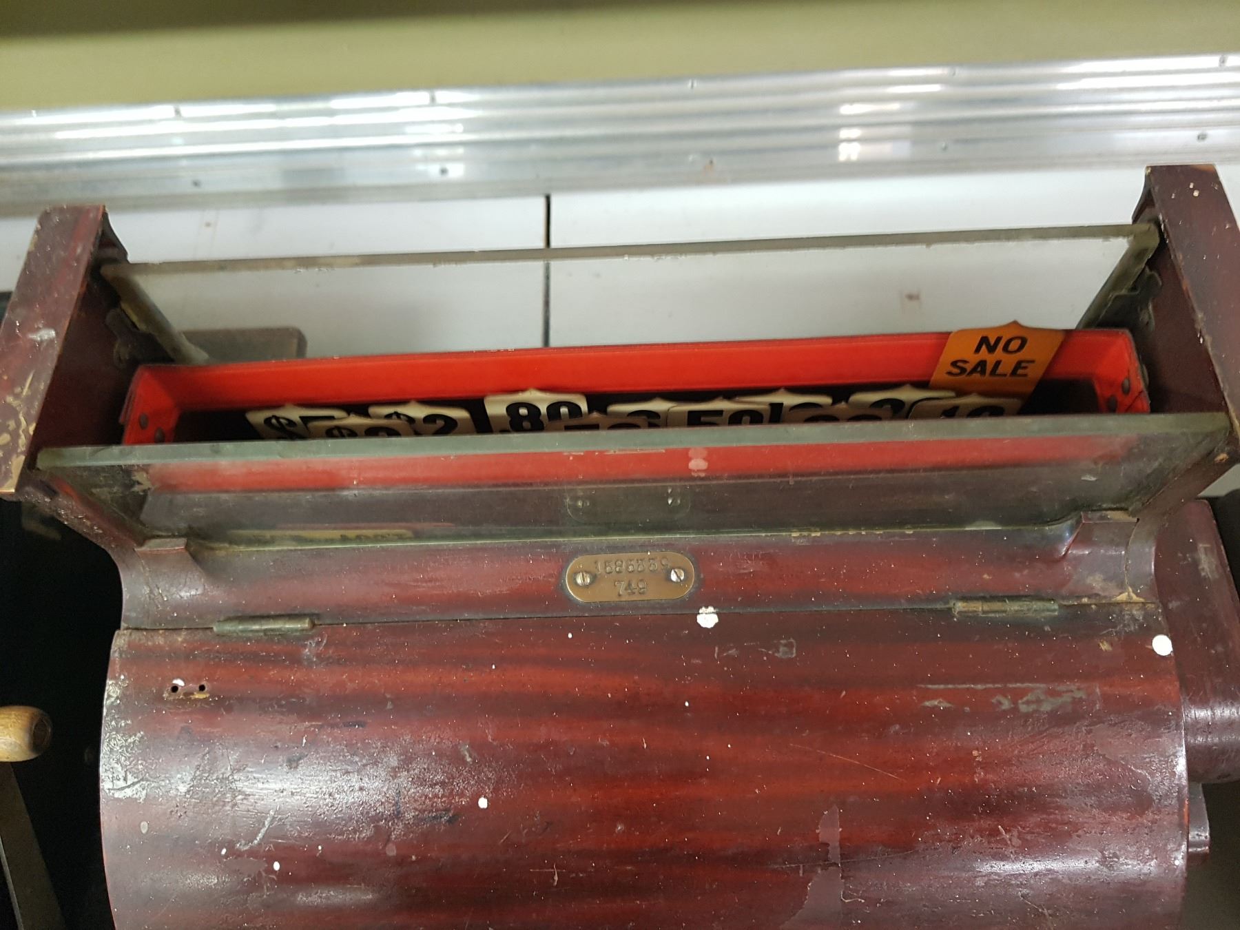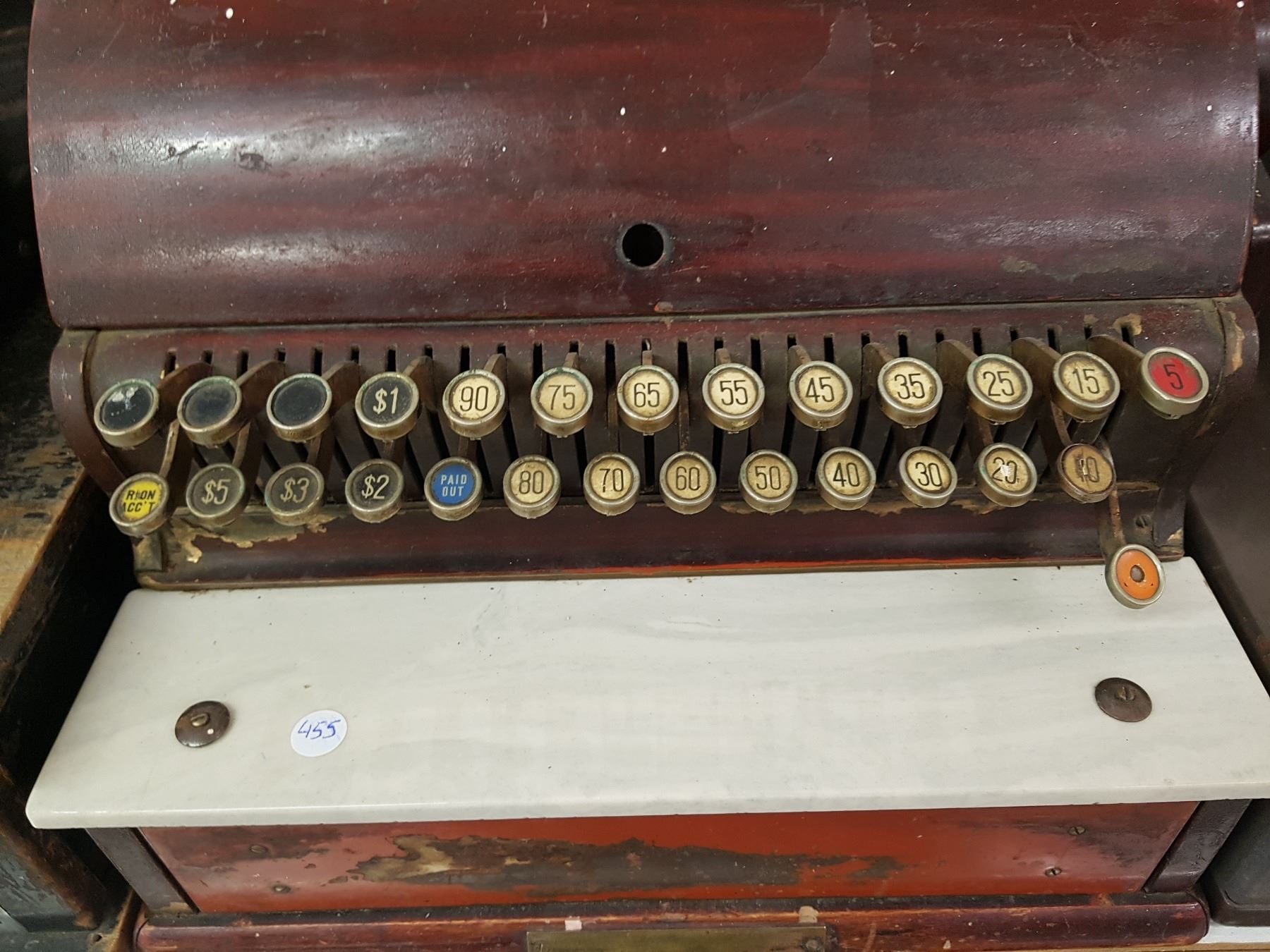 OLD WOOD AND TIN CASH REGISTER 19" WIDE