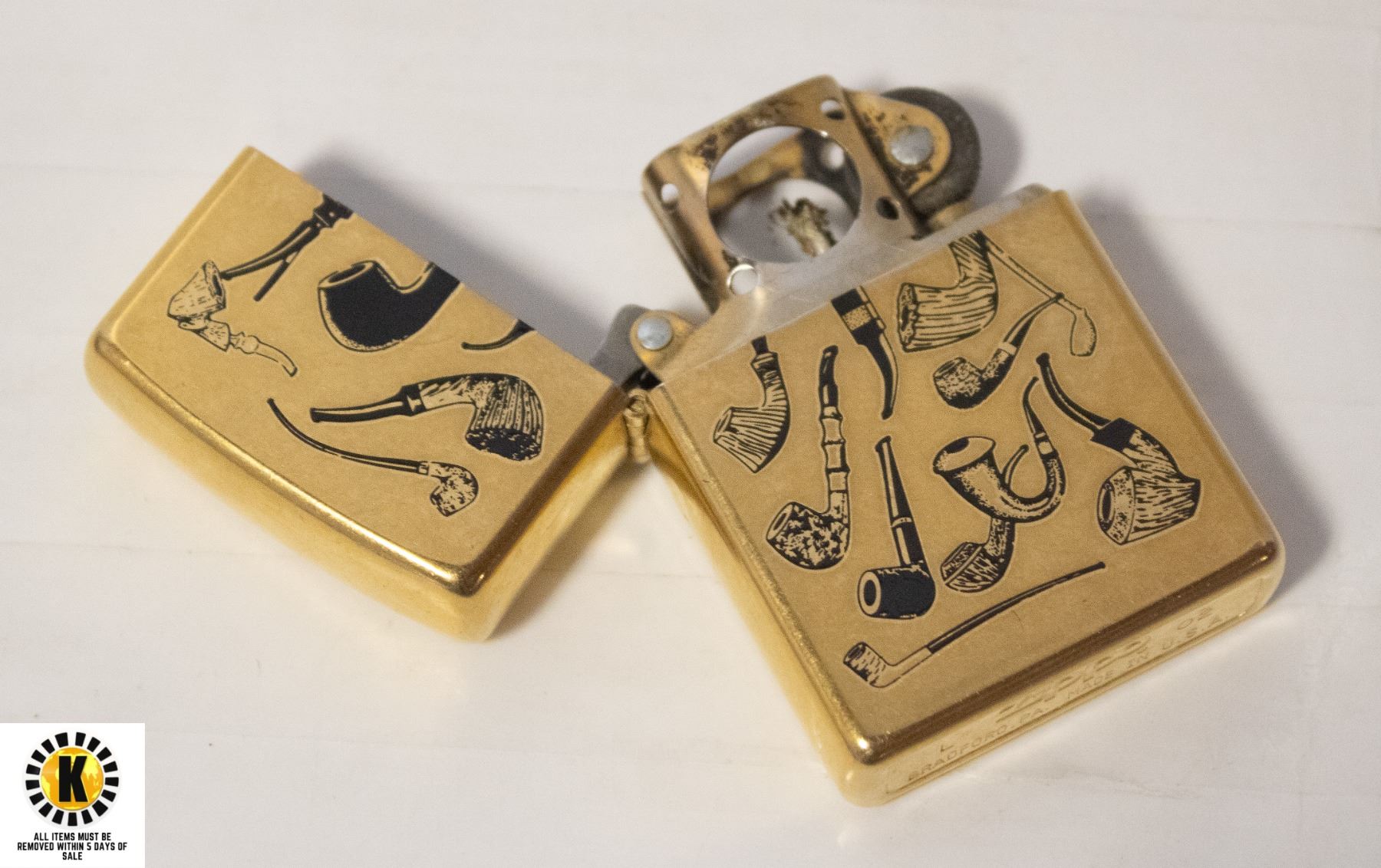 OLD ZIPPO LIGHTER WITH PIPE THEME GOLD TONE
