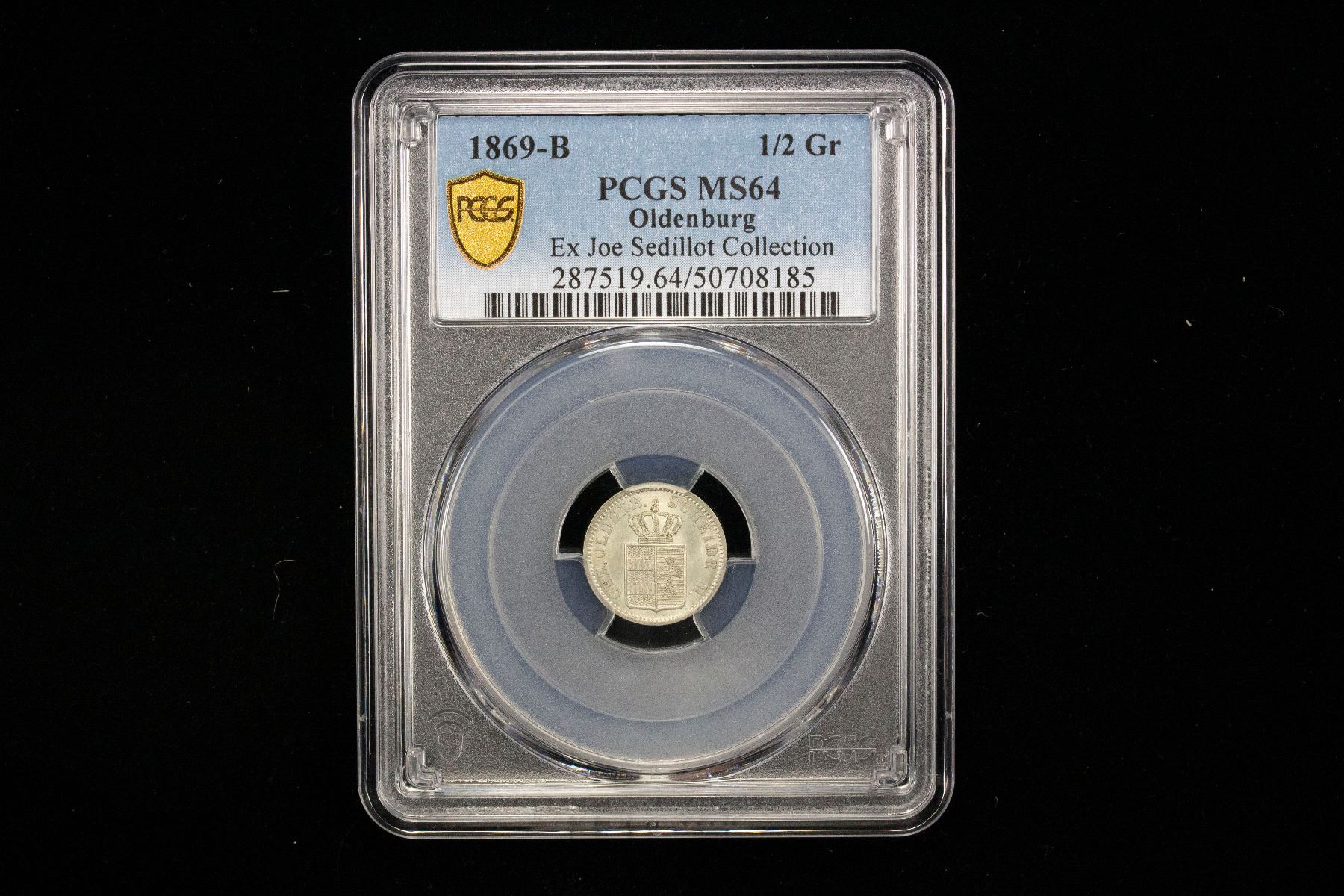 OLDENBURG: Peter II, 1853-1900, AR 1/2 groschen, 1869, KM-192, Cr-59, mint master initial B, a wonderful mint state example! PCGS graded MS64, ex Joe Sedillot Collection.