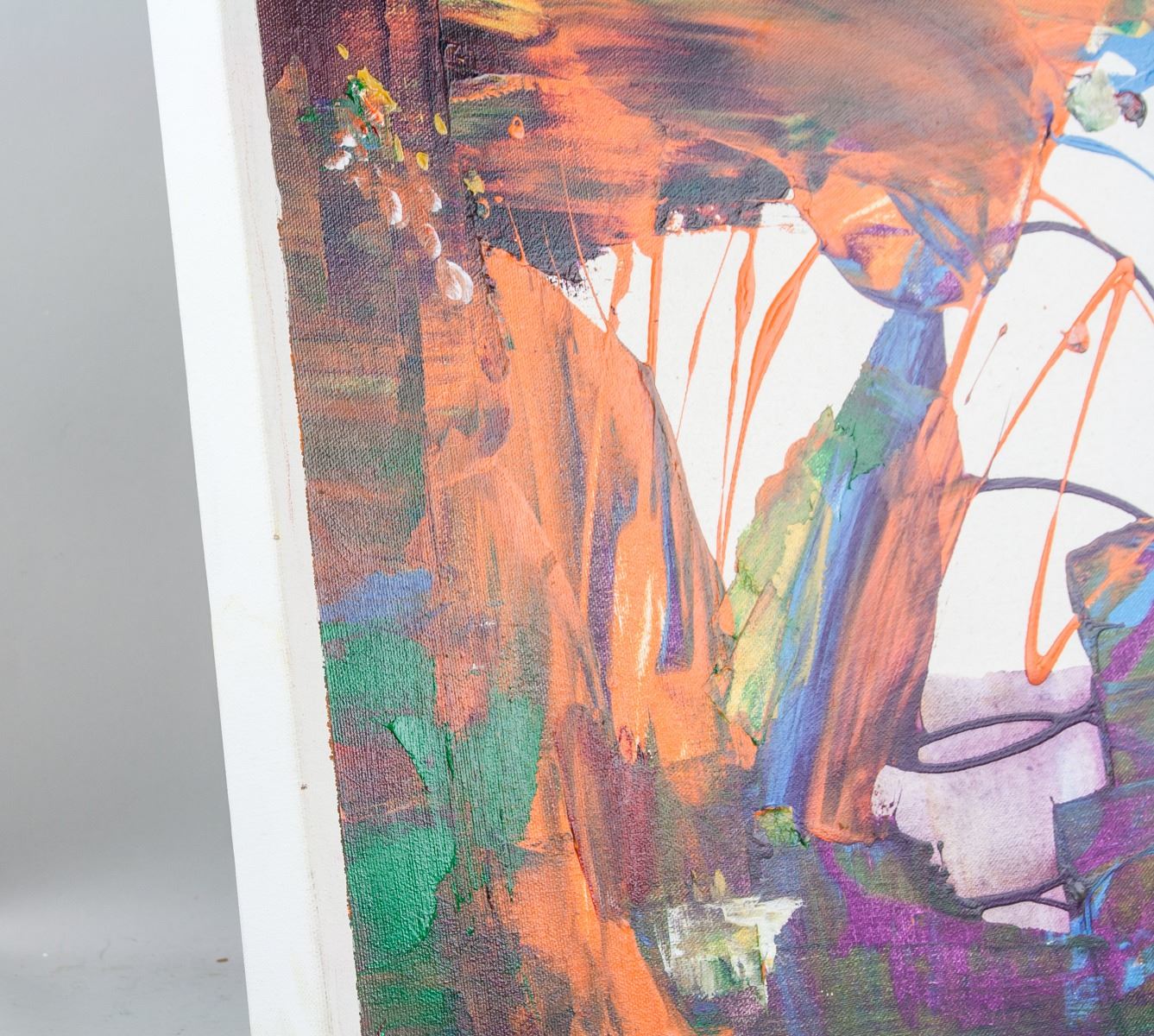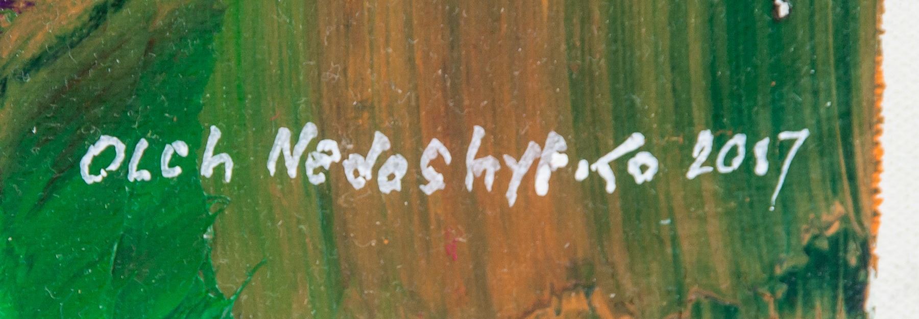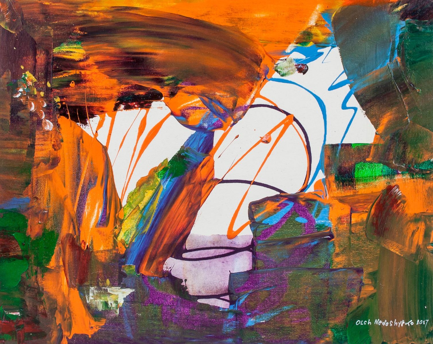 Acrylic on canvas. Featuring an abstract composition, entitled, Premonition." Signed by Oleg Nedoshytko (Ukranian-Canadian, born 1950) and dated 2017 on the lower right corner. 18 x 20 in (45.7 x 50.8 cm). At twenty one, Oleg Nedoshytko was listed in reserve after serving his mandatory military term as a nurse, and his choice of a career seemed predetermined: with his experience, the doors of a highly prestigious Medical School were open for him. In the meantime, he looked for a summer job in his native city of Odessa, a large port city on the Black Sea in southern Ukraine. He found it in a commercial advertising studio. That day changed his life. Working with paint opened a new world for him. From that point on, his suddenly discovered passion for art took care of his future. In the following months, Oleg became a fixture in local museums, copying nineteenth century masterpieces and drawing marble statues of ancient Greek gods. In 1972, he was admitted to the department of visual arts of South Ukrainian National University of Education. He graduated with a bachelor degree in Fine Arts five years later, having come a long way from a novice to a fully qualified professional. That same year, Oleg was invited to return to his alma mater in Odessa, this time in a teaching capacity. He provided instruction in classical observation and figure drawing, painting and composition for nearly forty years. From 2007 to 2015, he held a professorial position with the Chair of Visual Arts in his department, and in 2011 and 2012 , served as its Dean. His students are now working around the world, and his theoretic works and instructional books have been printed in professional magazines in Ukraine, Europe and the USA. In 2015, Oleg Nedoshytko celebrated his 65th jubilee by holding a personal exhibition in Odessa Museum of Western and Eastern Art, where security veterans still remember him as a boy with attentive eyes, graphite pencil in hand. He told journalists he had made a full circle, coming back to celebrate his life achievements in the very place where he started. When asked about the secret behind his prolific work and its never-fading public appeal, the artist said, “To create a genuine work of art, professional skills and technical knowledge are not enough, no matter how superb they might be. The work has to become an embodiment of condensed emotion and powerful spiritual energy, an imprint of the artist’s soul. The more of yourself you invest into your work, the bigger the return.” PROVENANCE: From the artist