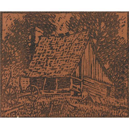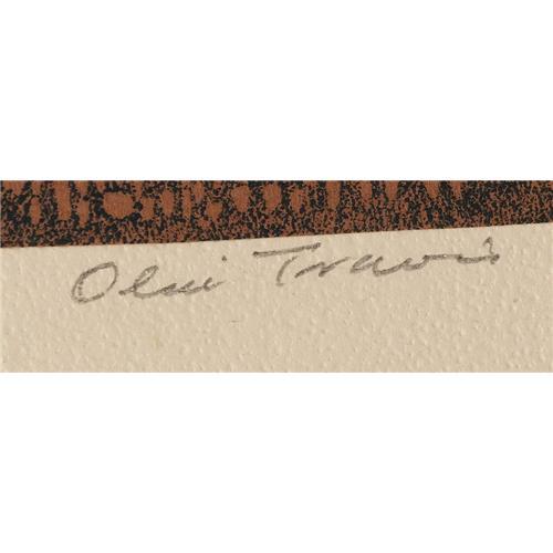 <B>OLIN TRAVIS (1888-1975)</B></I><BR>Untitled Pioneer Cabin<BR>Color-block print<BR>5in. x 6in.<BR>Signed lower right<BR><BR>Provenance:<BR>Collection of the Heard Museum, McKinney, Texas<BR><BR> <B>Condition Report:</B> Excellent condition. Unframed.<BR><BR><b>Shipping:</b> Requires 3rd Party Shipping (<a target="_blank" href="http://www.heritageauctions.com/common/shipping.php">view shipping information</a>)