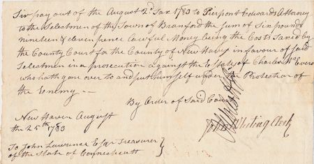 (1760 - 1833) American Revolution soldier and patriot, Secretary of the Treasury succeeding Hamilton. Interesting D.S., 1p., 4" x 7 3/4", 1783, New Haven, a legal document prosecuting a Tory: "in a prosecution against the estate of Charles McEvers who hath gone over to and put himself under the protection of the enemy...".