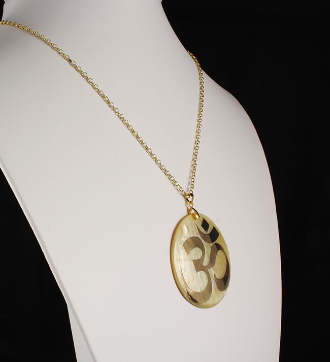 OM Mother of Pearl Big Round Pendant (Yellowish) **|**|** OM Big Round Mother of Pearl Gold Plated Pendant ; MSRP: $0