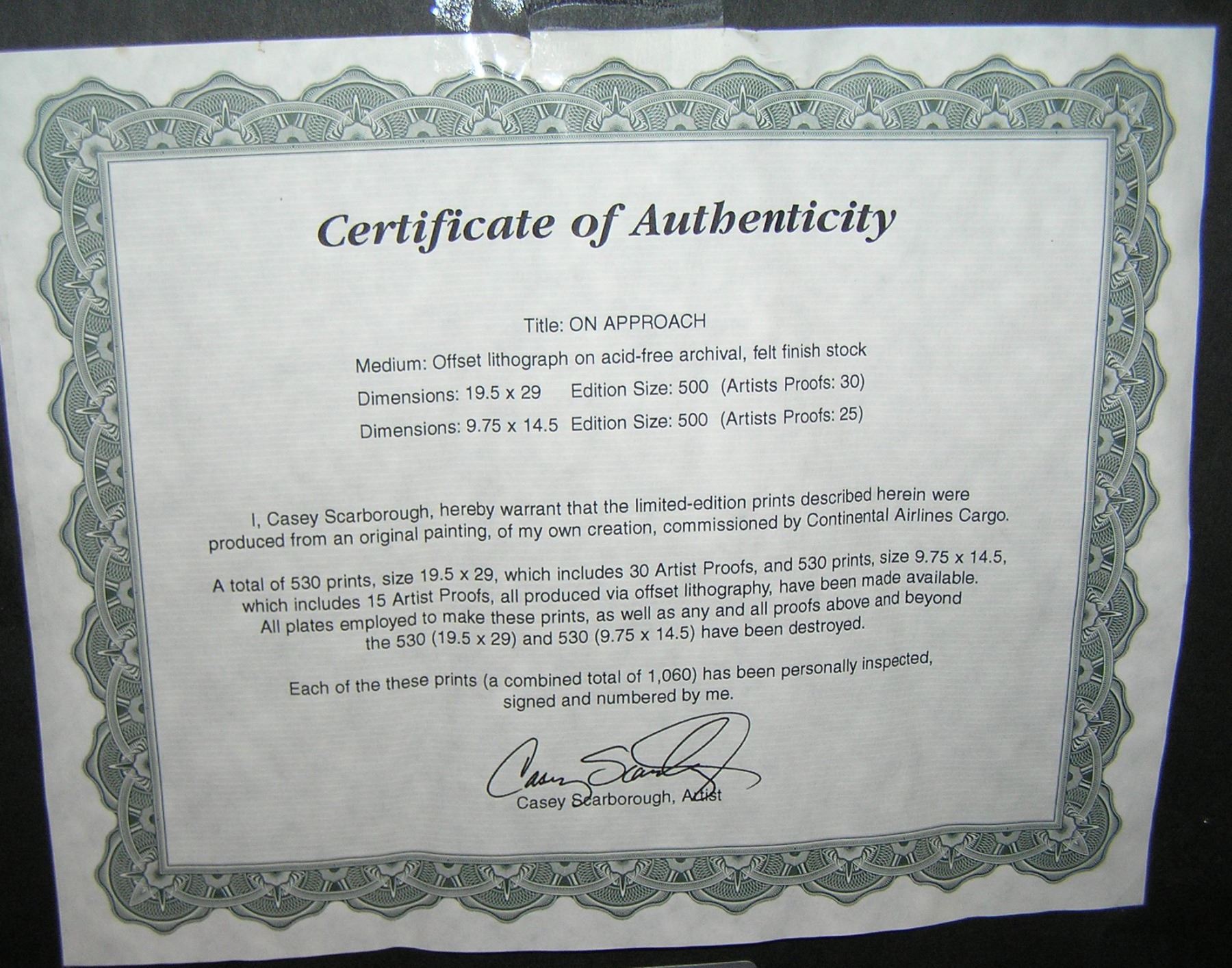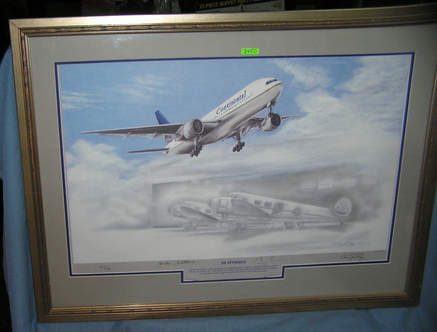 Continental Airlines "ON APPROACH" limited edition print by famed artist Casey Scarborough 422 of 500 artist and designer signed with certificate of authenticity est. value $650.00-$750.00