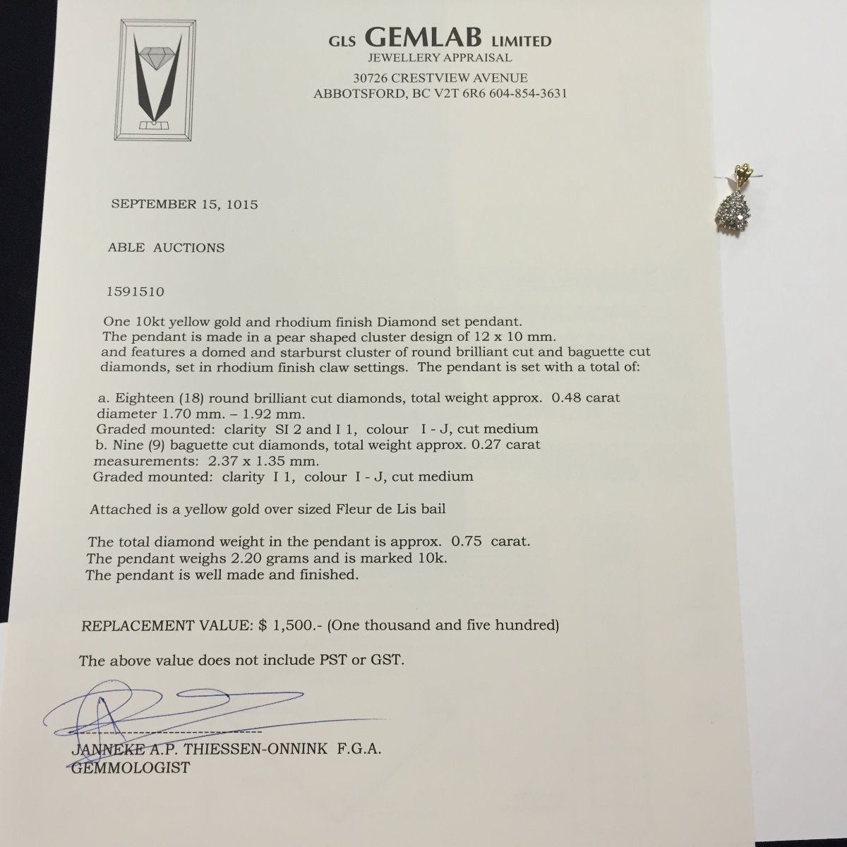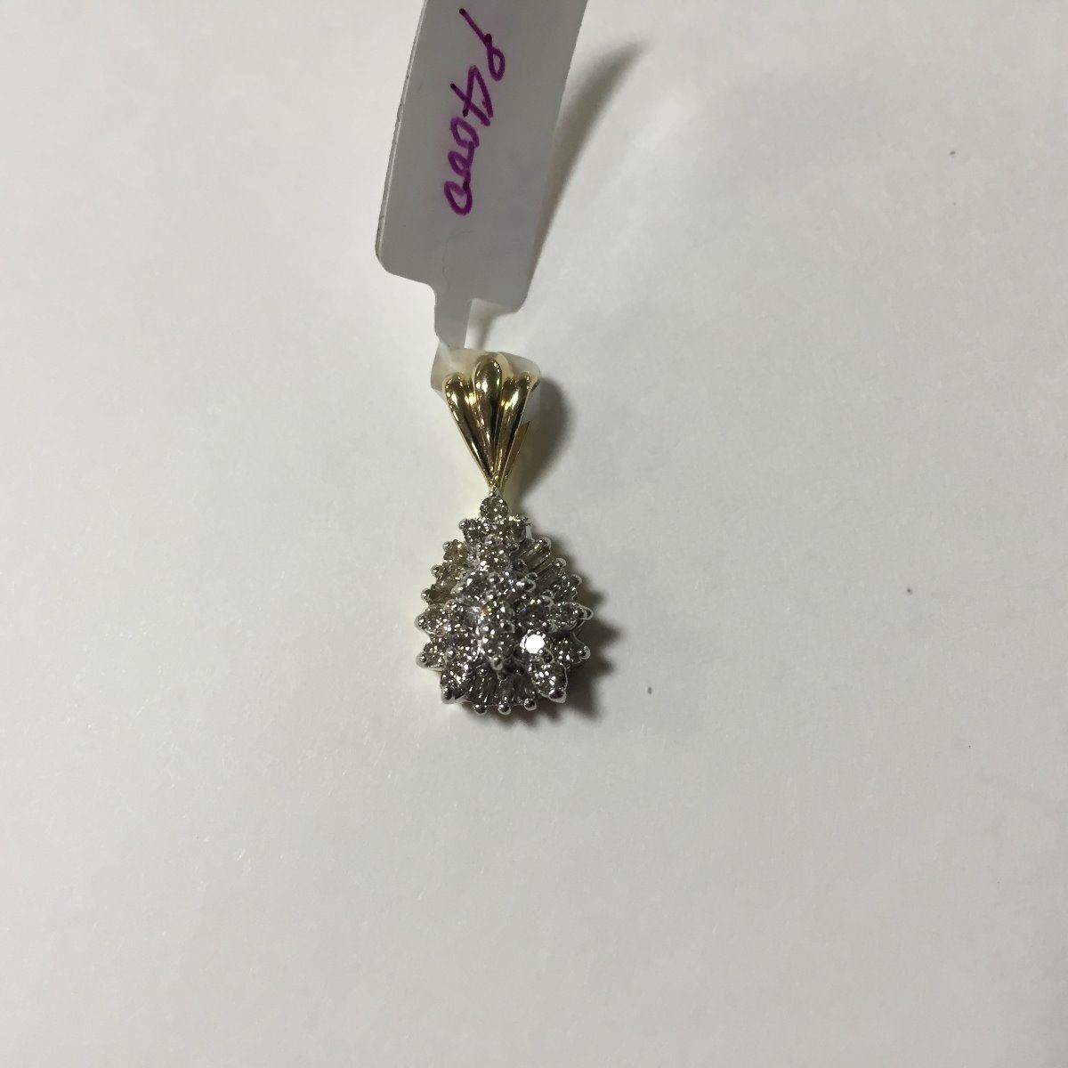 ONE 10KT YELLOW GOLD AND RHODIUM FINISH DIAMOND SET PENDANT WITH 27 DIAMONDS, APPROX 0.75CARAT REPLACEMENT VALUE $1500