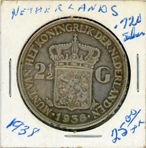 ONE 72% SILVER COIN (FROM THE NETHERLANDS) *1938*