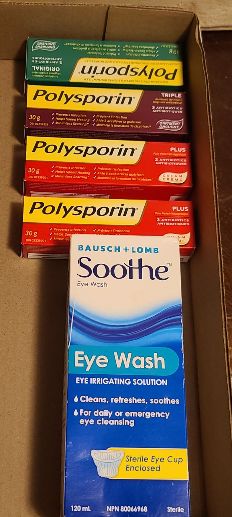 ONE BOTTLE OF EYEWASH AND FOUR POLYSPORIN
