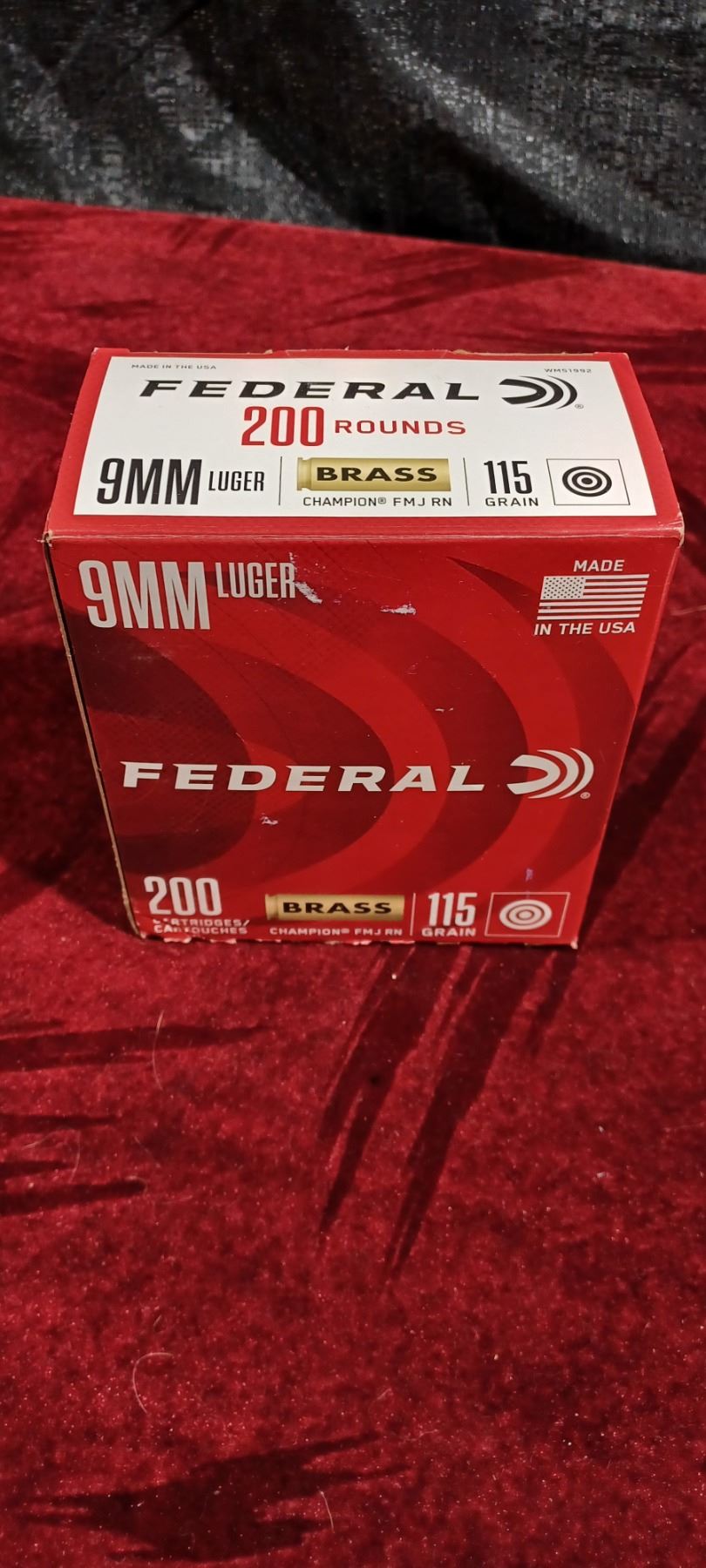 ONE BOX (200RNDS) OF FEDERAL 9MM LUGER 115GR