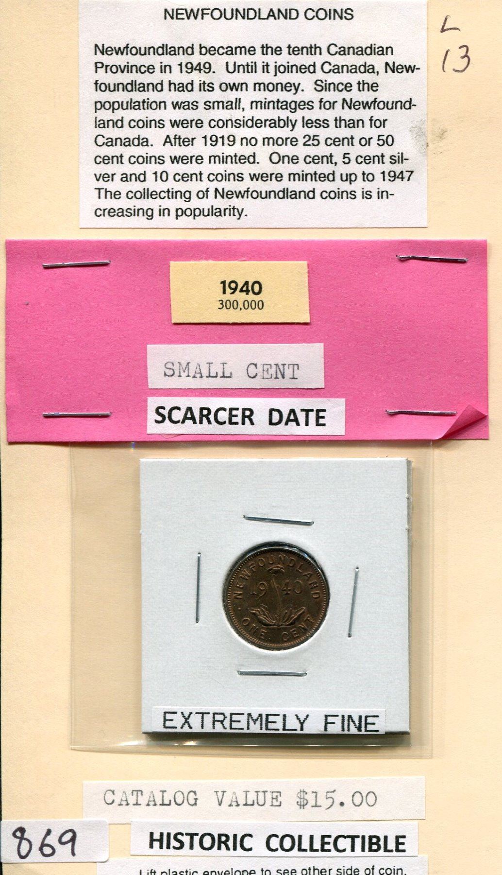 ONE CENT COIN (1940) *CANADA* (SCARCER DATE) *NEWFOUNDLAND*