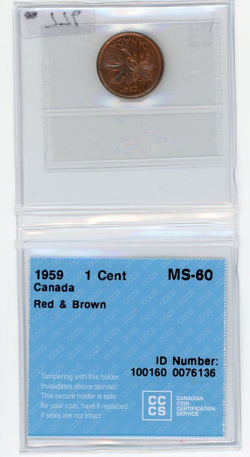 ONE CENT COIN (CANADA) *1959* (CCCS GRADED)