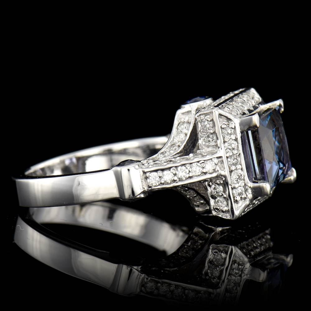 ONE CENTER CUSHION CUT BLUE NATURAL SAPPHIRE TW 2.31CTS, 1.01CTS CTS TW ROUND CUT DIAMONDS, 14K WG RING 8.86GR