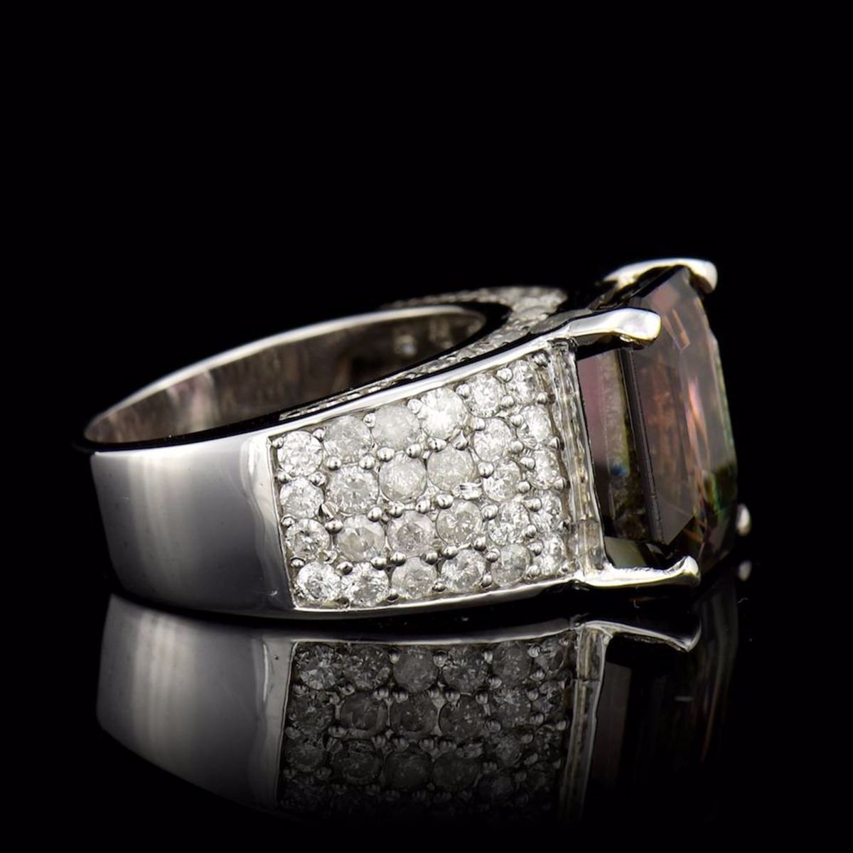 ONE CENTER EMERALD CUT MULTI COLOR TOURMALINE TW:9.60CTS, 2.18 CTS ROUND CUT DIAMONDS, ONE 14 WHITE GOLD RING 10.08GR