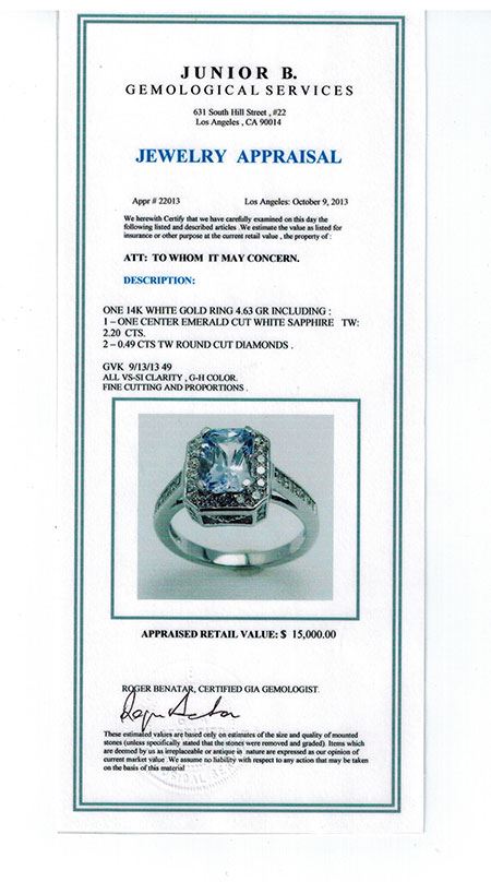 ONE CENTER EMERALD CUT WHITE SAPPHIRE TW 2.20CTS
