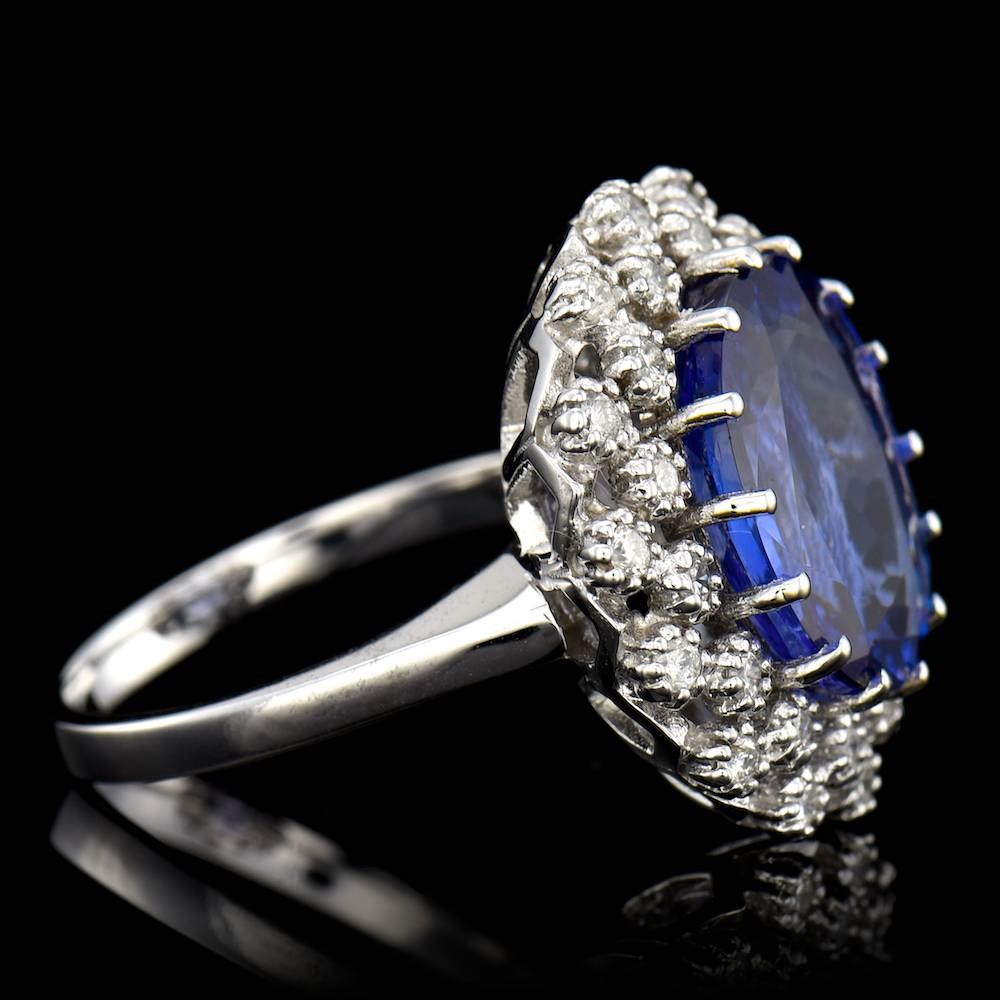 ONE CENTER OVAL CUT FINE NATURAL TANZANITE TW 6.65CTS, 0.56CTS TW ROUND CUT DIAMONDS, 14K WG RING 7.18GR