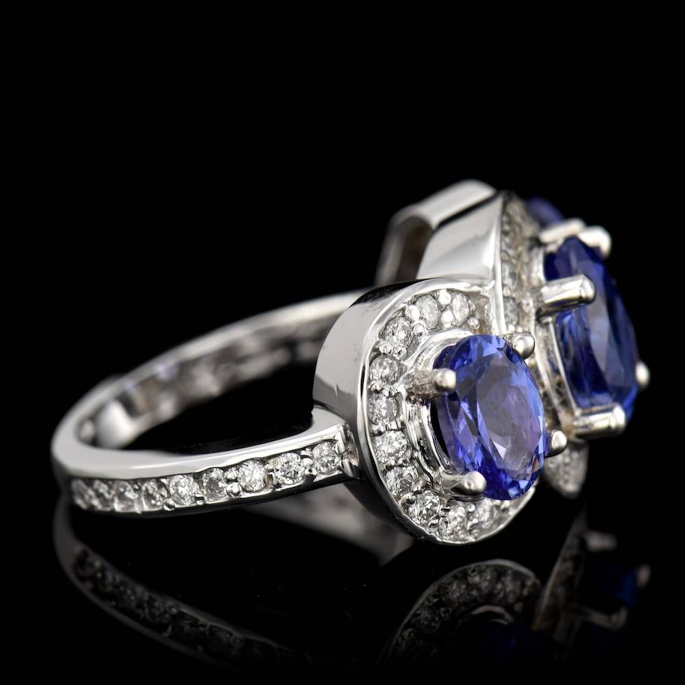 ONE CENTER OVAL CUT TANZANITE TW: 1.94CTS, 2 OVAL CUT TANZANITE TW:1.76CTS, 0.70CTS TW ROUND CUT DIAMOND, 14K WG RING 6.97GR