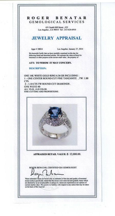 ONE CENTER ROUND CUT FINE TANZANITE TW 1.88CTS
