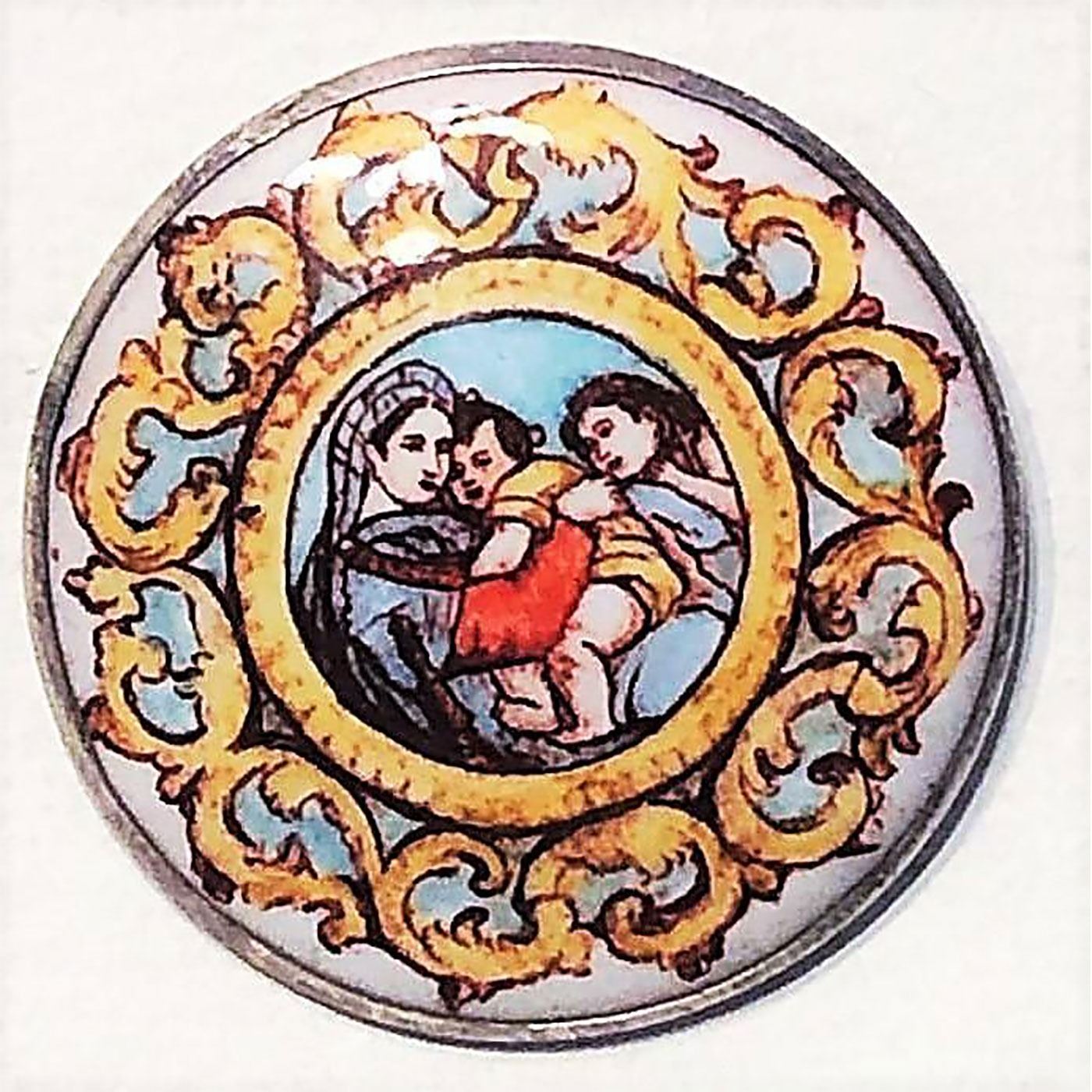 1 Large pictorial enamel from the Motiwala Studios in the 1950's. Here is a beautiful colorful enamel with an ornate border and set in silver from the Motiwala studios in India.