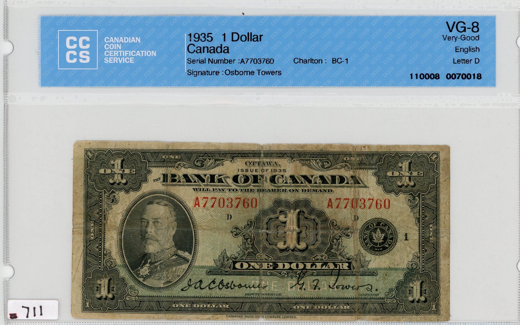 ONE DOLLAR BILL (CANADA) *1935* (CCCS GRADED)