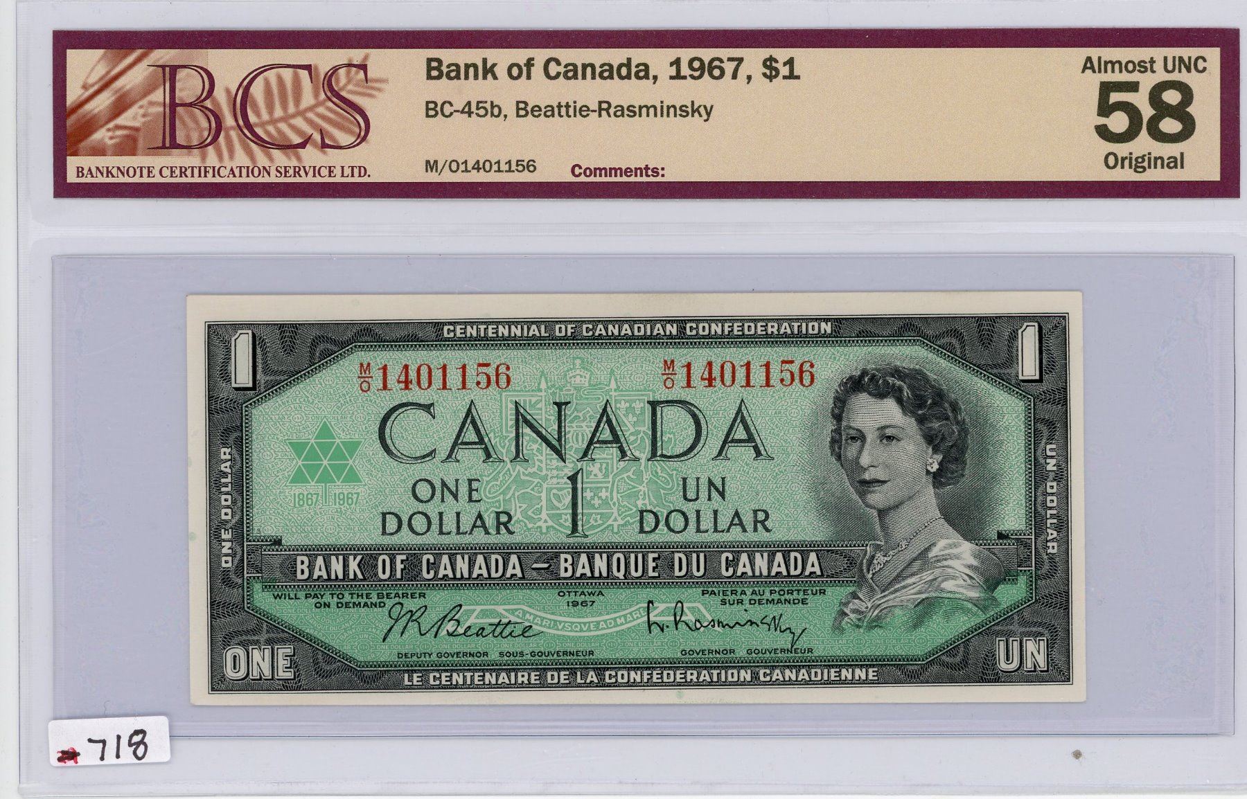 ONE DOLLAR BILL (CANADA) *1967* (BCS GRADED)