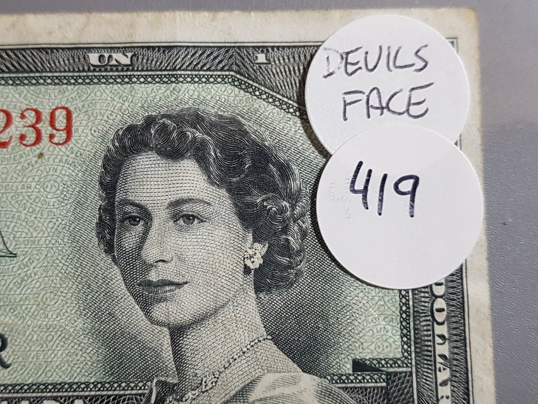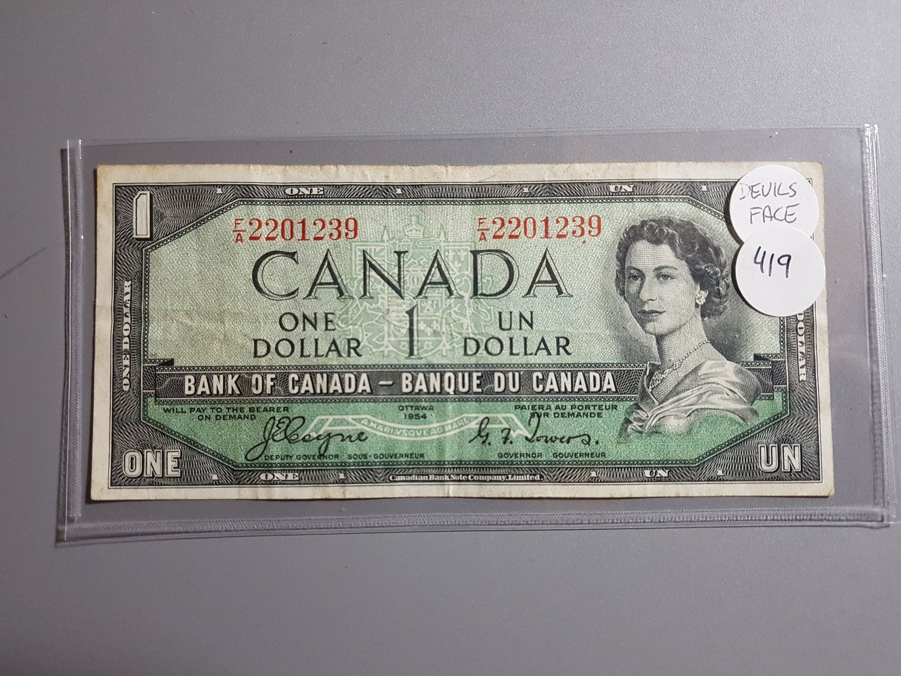 ONE DOLLAR BILL (COYNE TOWERS) *1954* (DEVILS FACE) *CANADA*