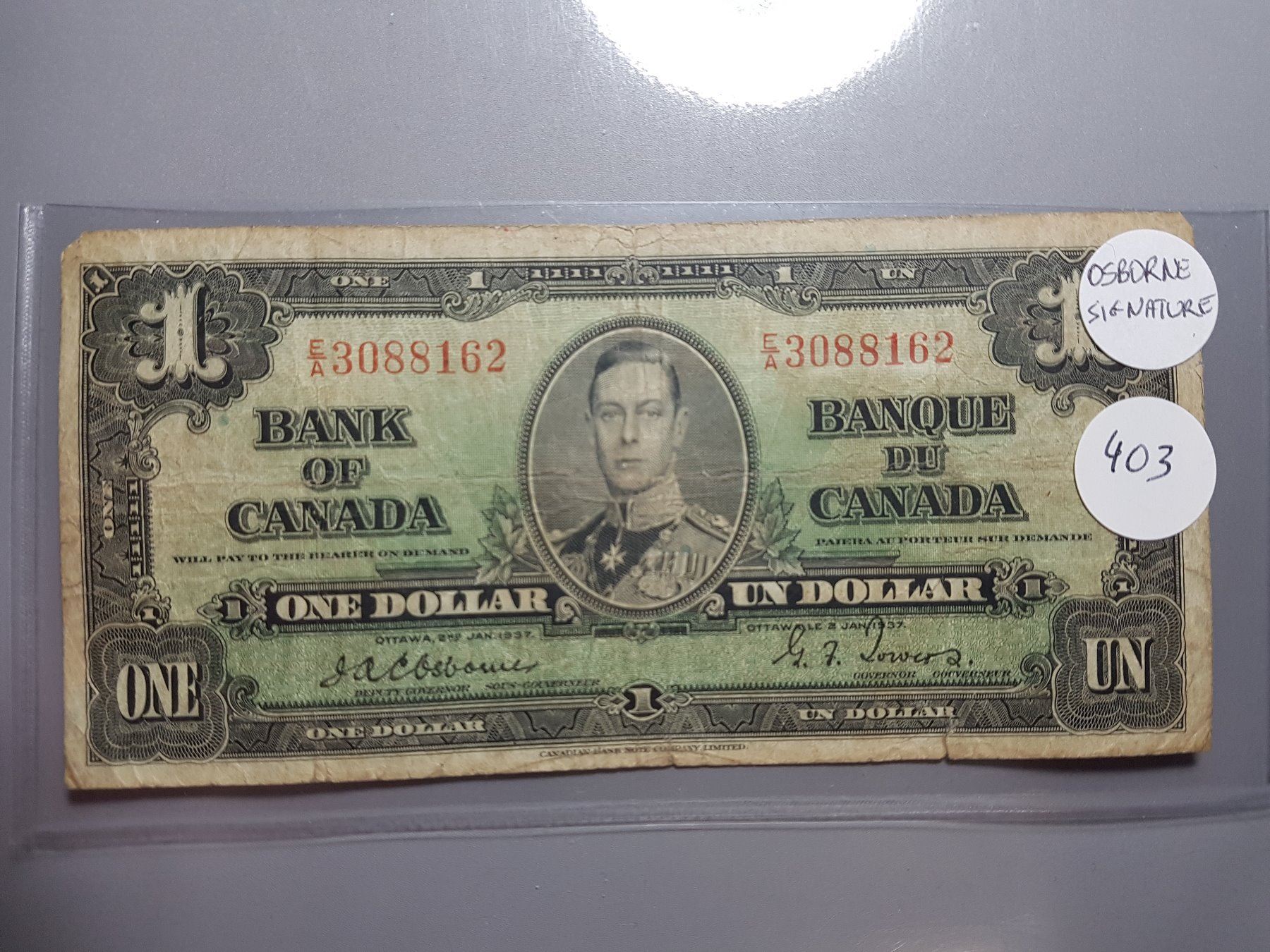 ONE DOLLAR BILL (OSBORNE SIGNATURE) *1937* (CANADA)