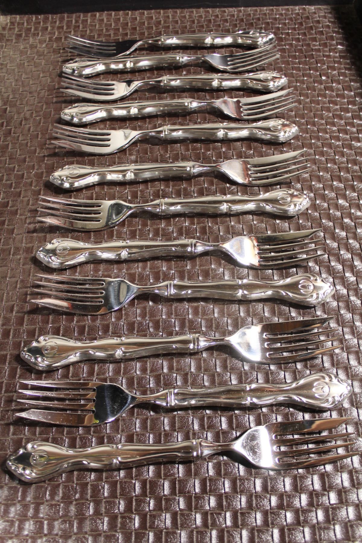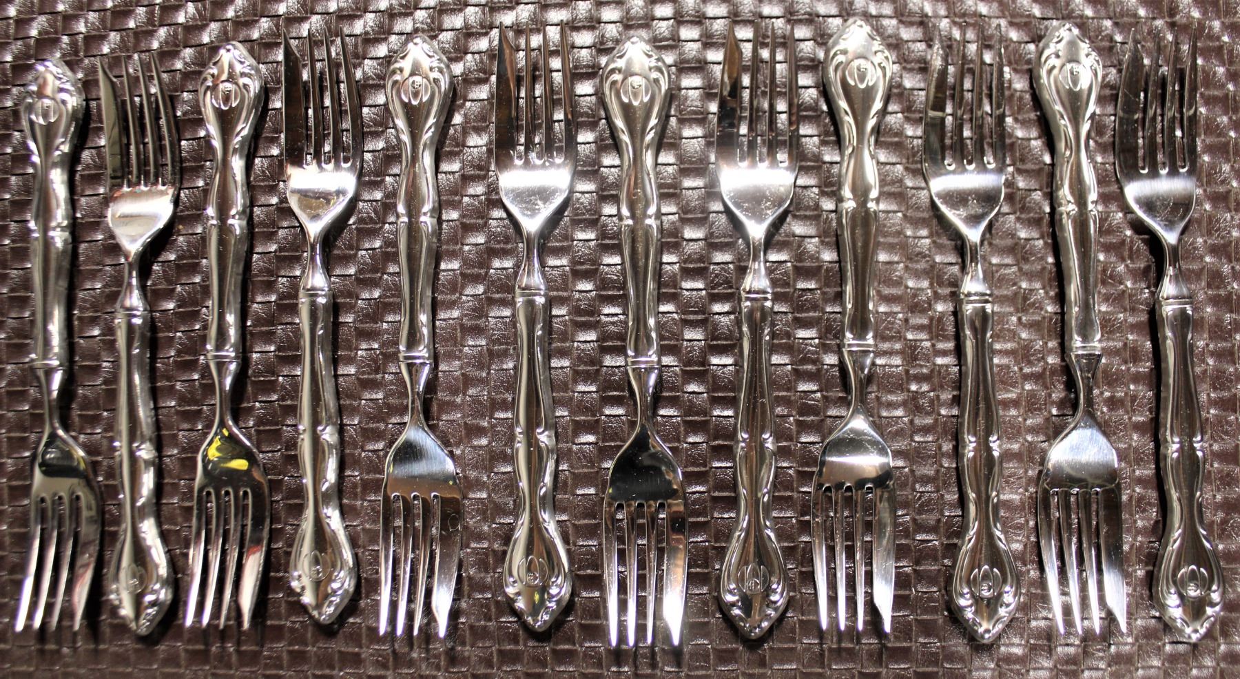 8" CANTATA KING LOUIS FORKS. ALL NEW AND WRAPPED IN TISSUE PAPER. DECORATIVE STYLE. MADE IN CANADA