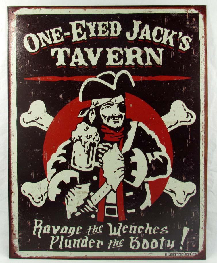 ONE EYED JACKS TAVERN METAL ADVERTISING SIGN - APPROX. 12.5" BY 16"
