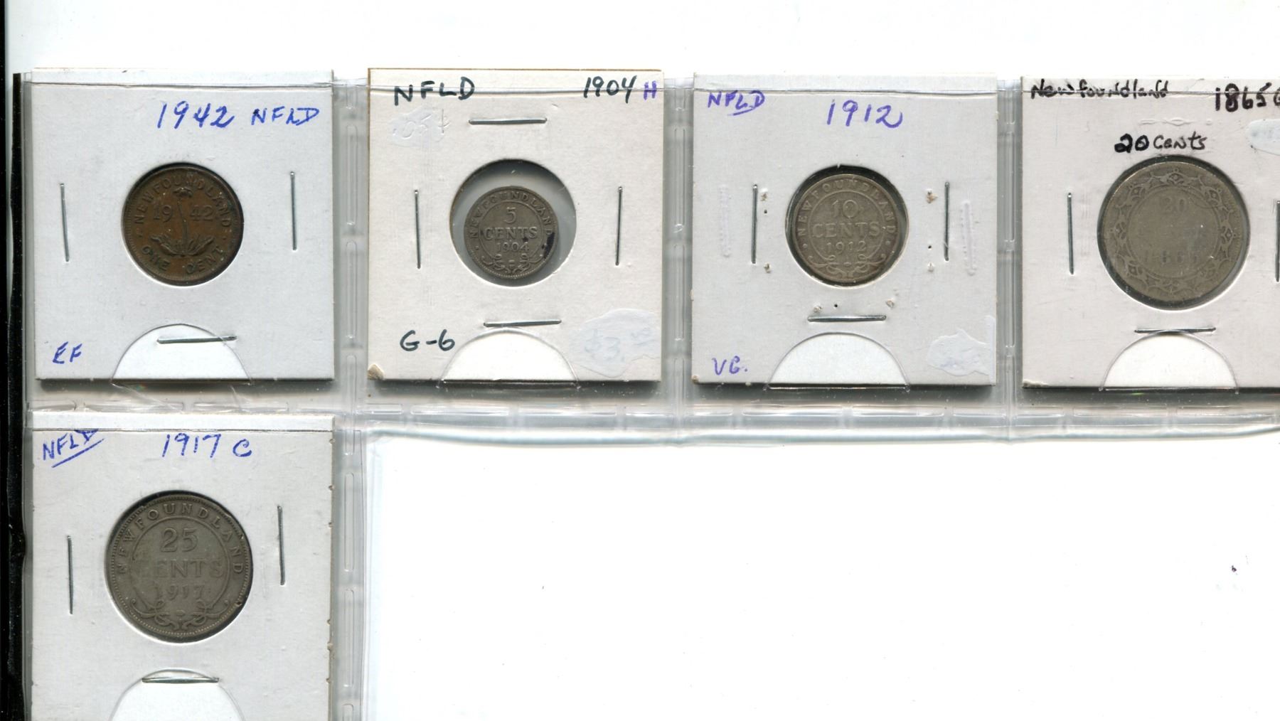 ONE, FIVE, TEN, TWENTY, AND TWENTY-FIVE CENT NEWFOUNDLAND COINS