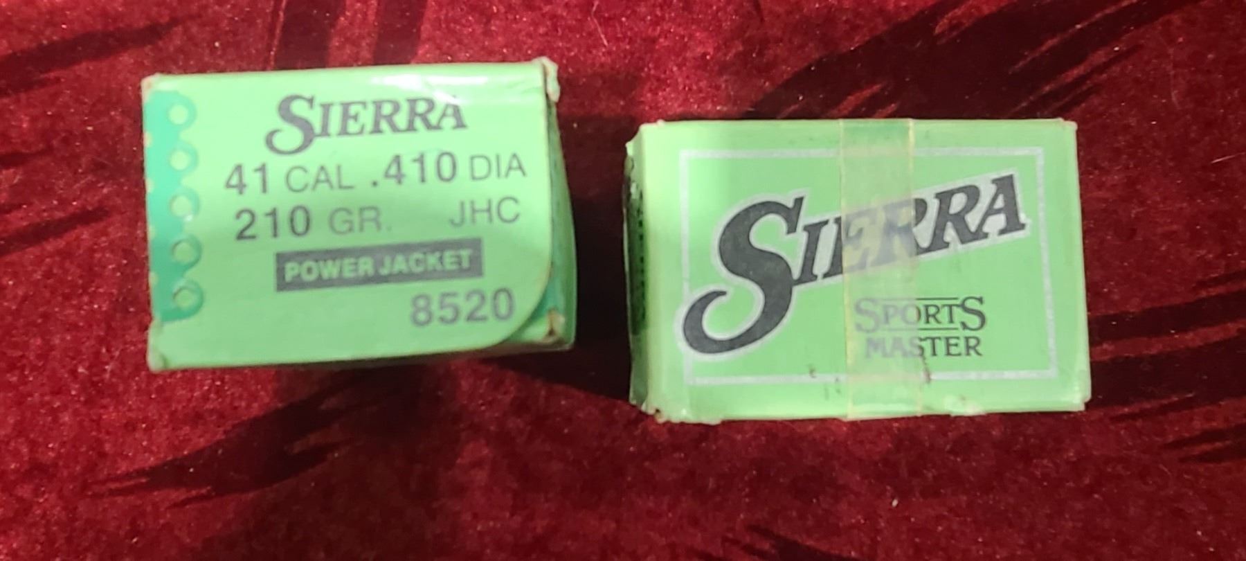 ONE FULL AND ONE PARTIAL BOX OF SIERRA 41 CAL 210GR JHC BULLETS