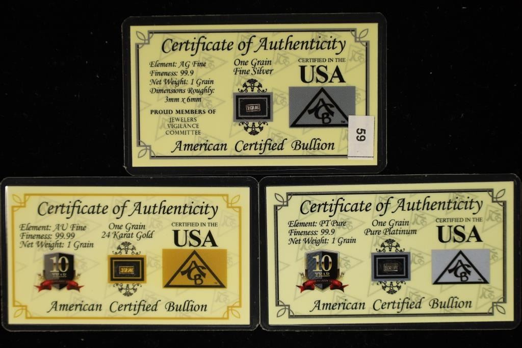 LAMINATED CARD AND CERT FROM AMERICAN CERTIFIED BULLION.