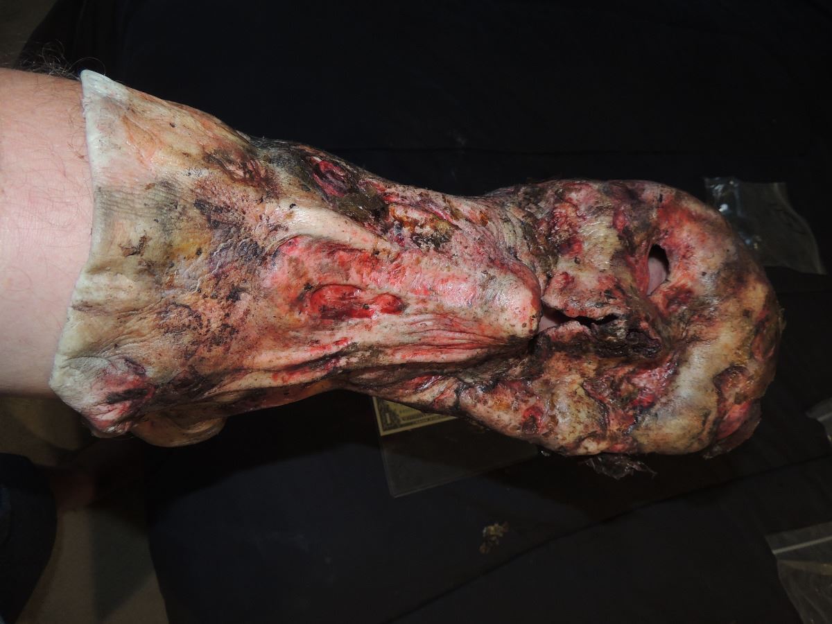 This is the full head silicone mask of the burnt person in ONE MISSED CALL! SCREEN MATCHED based on the fact that this was the only one made.
