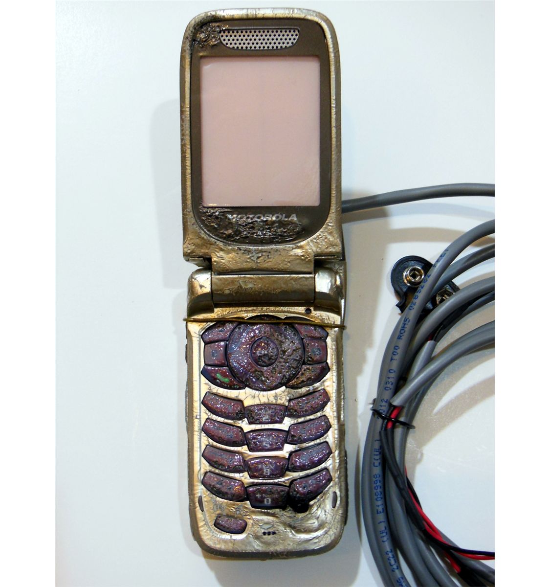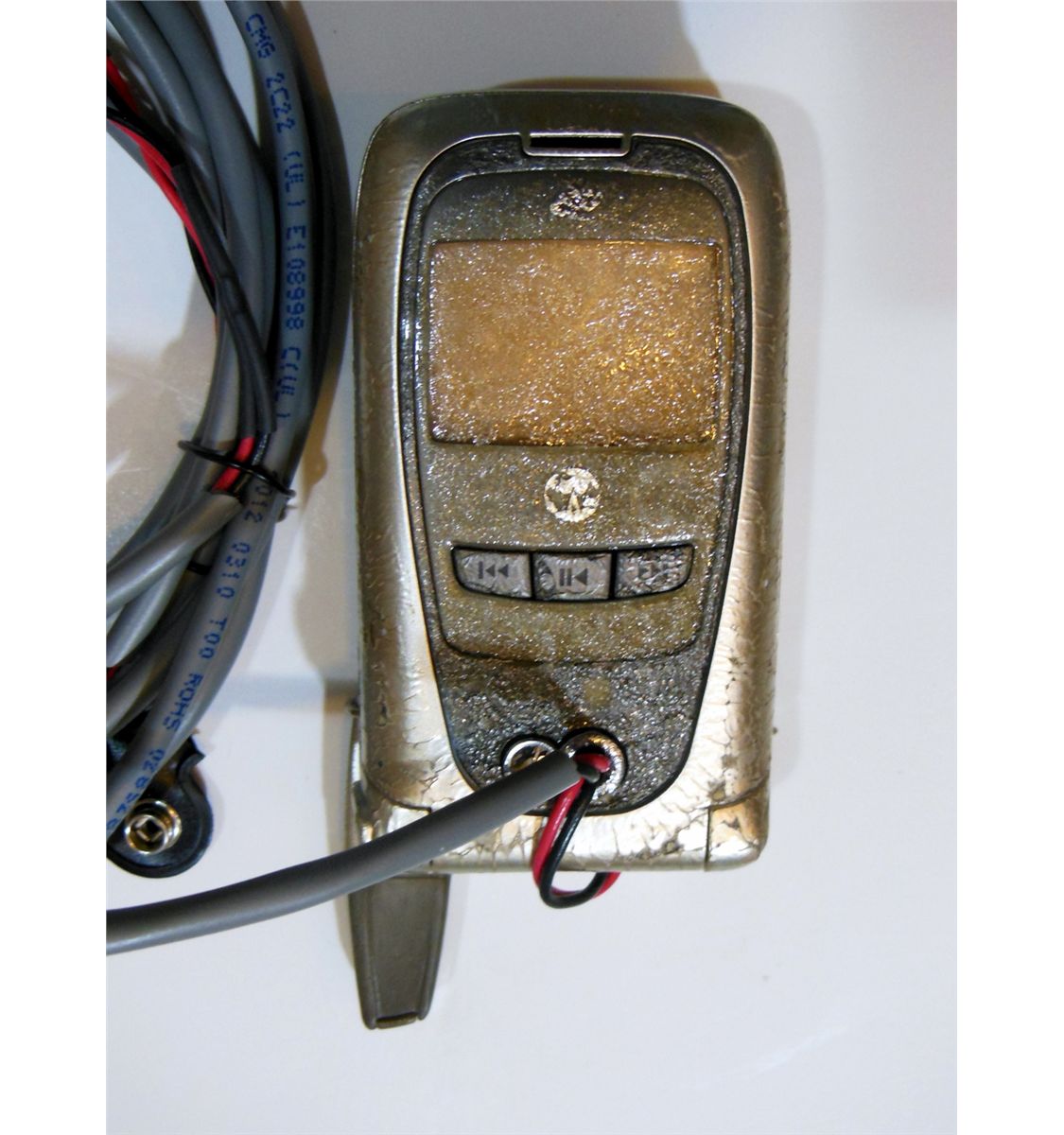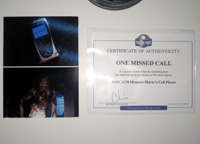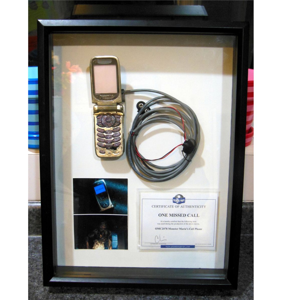 This Screen Used and Matched burnt cell phone can be clearly seen at the end of ONE MISSED CALL as Beth discovers it in the hand of Ellie's burnt mother inside of a vent she is crawling through. It is a major plot point of the film, as it is the source of all the outgoing calls throughout the entire film.