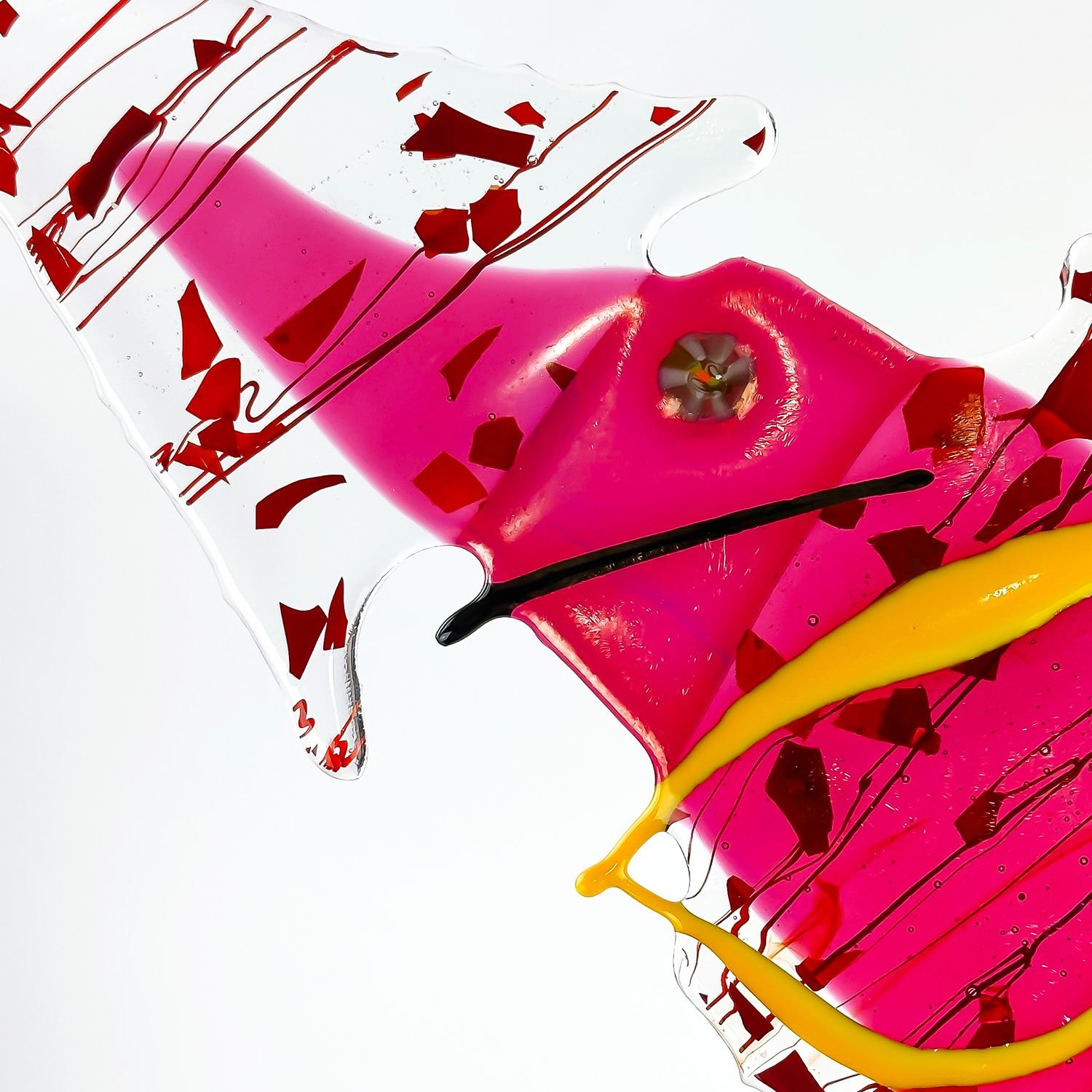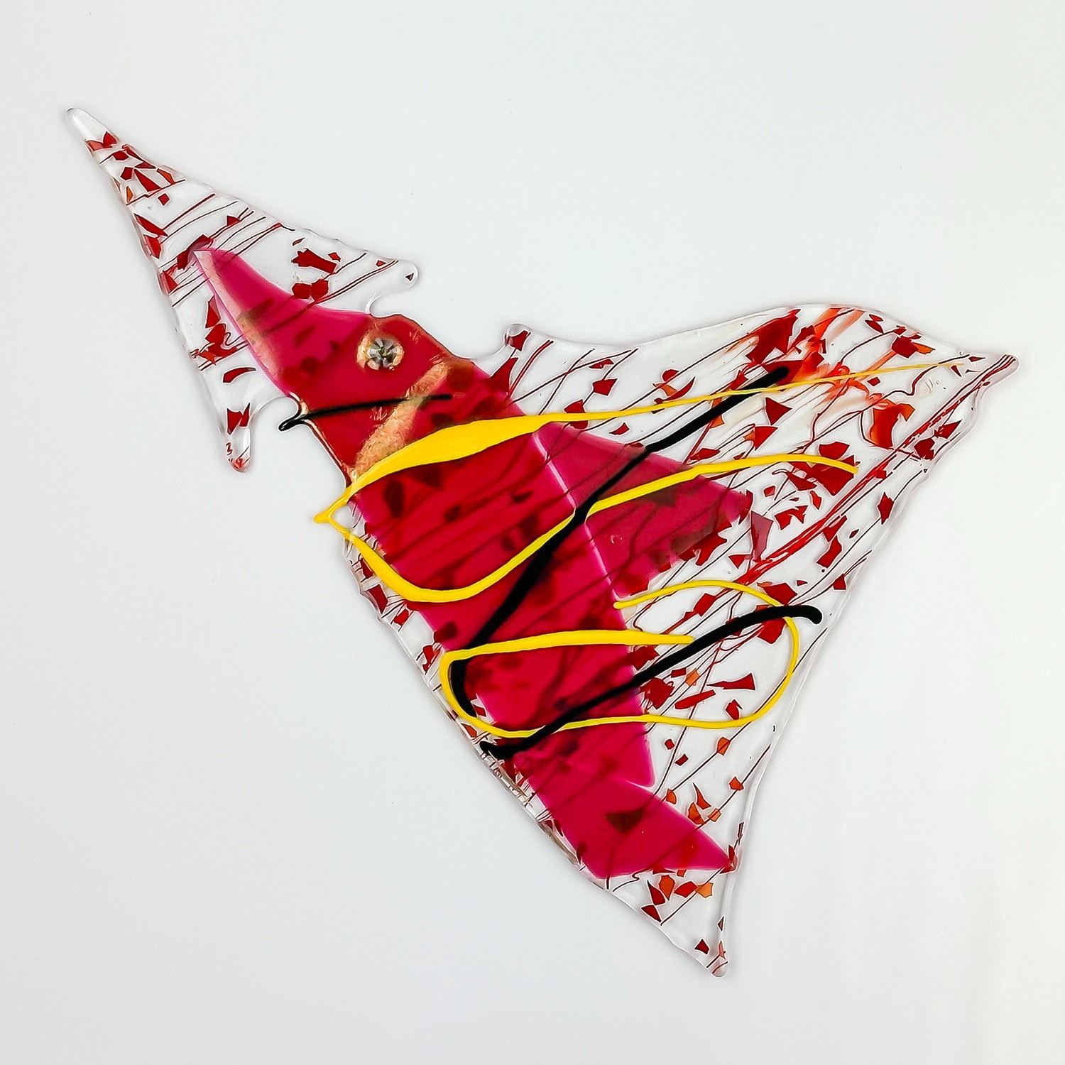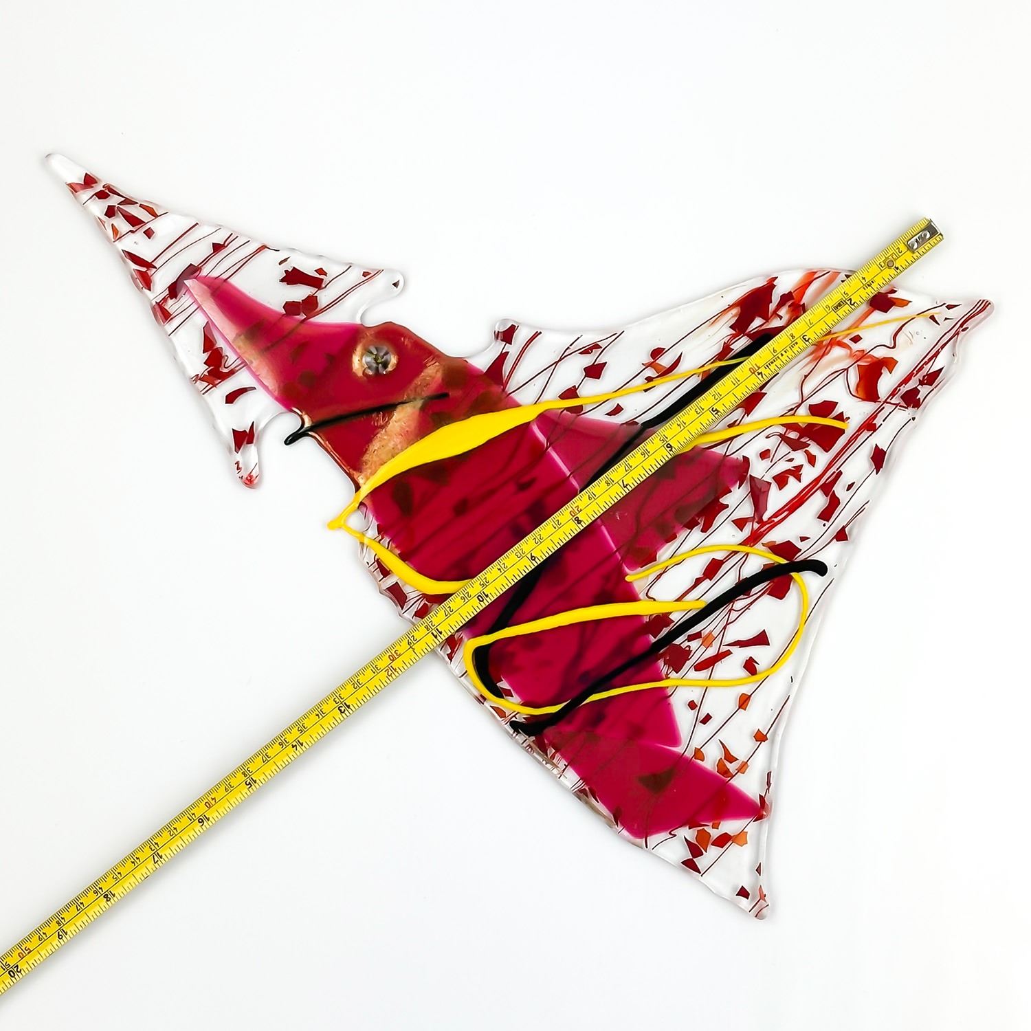 #8010 - FLAT HAND CRAFTED BLOWN STUDIO ART GLASS FISH. HOME OR OFFICE FISH OCEAN SHARK WALL DECOR. 18”(45.5 CM) LONG BY 11” (28 CM) WIDE AND 0.375” (0.95 CM) THICK