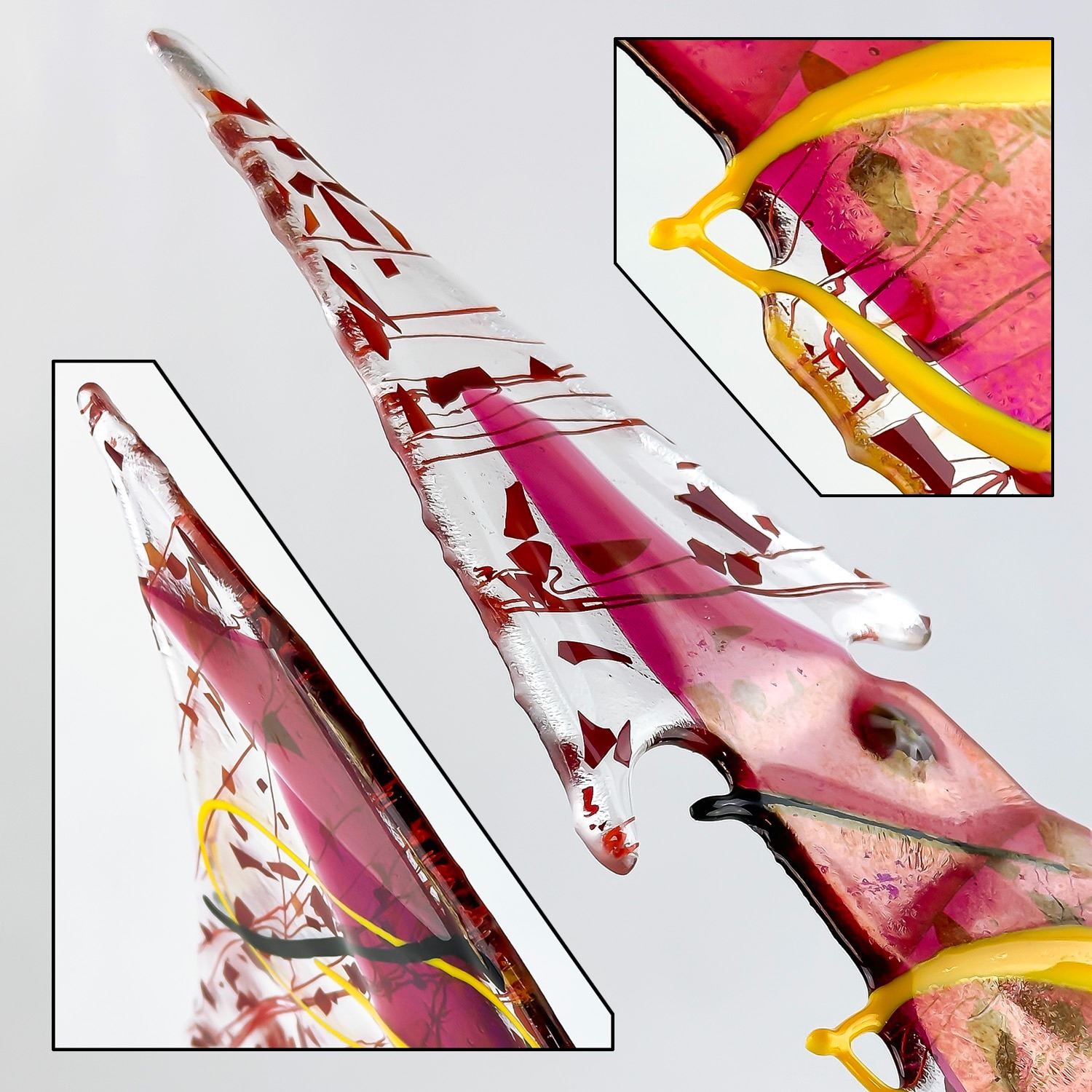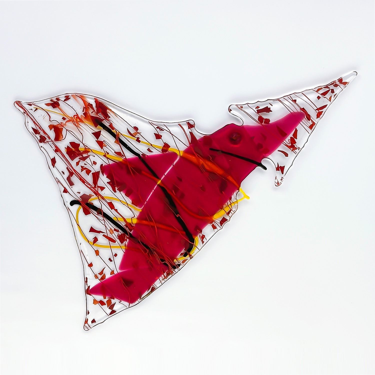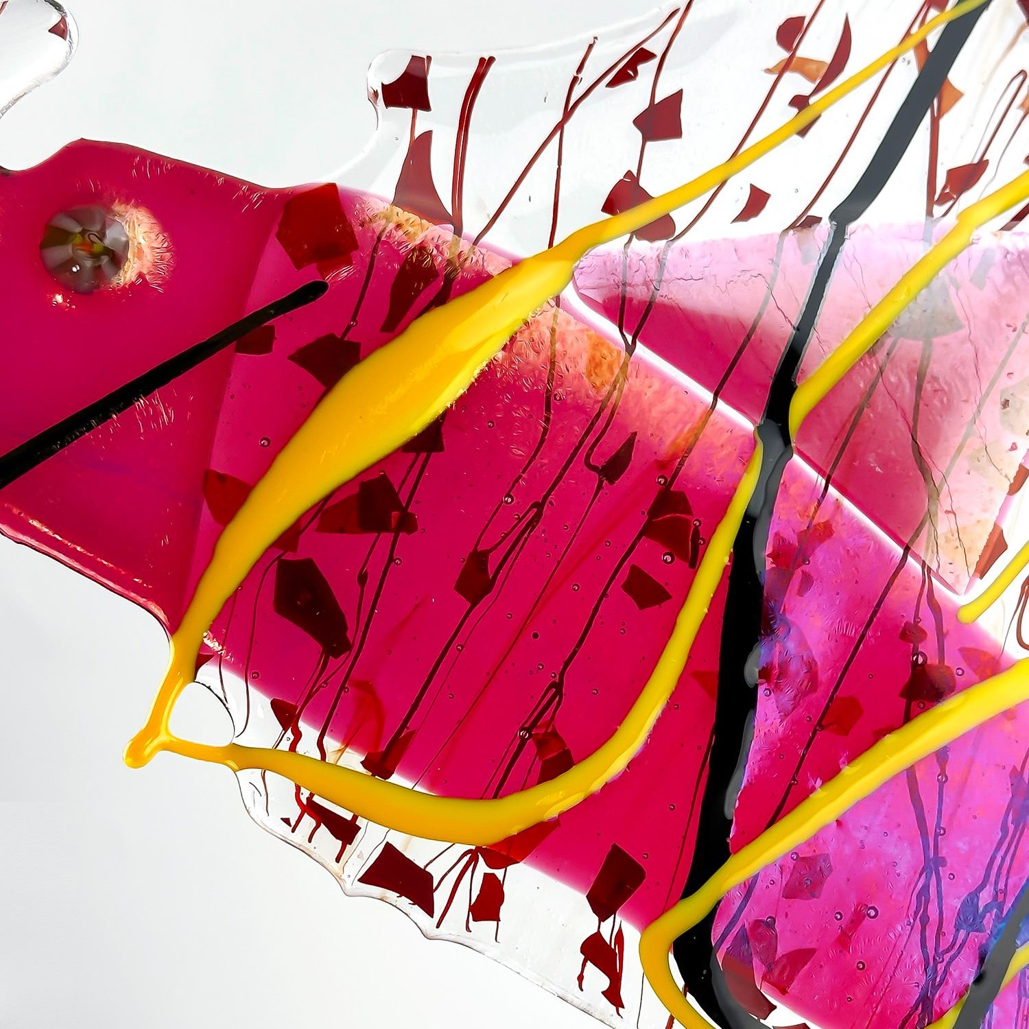 #8010 - FLAT HAND CRAFTED BLOWN STUDIO ART GLASS FISH. HOME OR OFFICE FISH OCEAN SHARK WALL DECOR. 18”(45.5 CM) LONG BY 11” (28 CM) WIDE AND 0.375” (0.95 CM) THICK