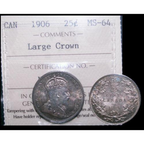 ONE OF THE FINEST KNOWN! 1906 "Large crown" 25¢ ICCS MS64PQ. Superb toning over full underlying luster. Wow! An amazing example. Excellent strike with clean fields and lovely surfaces. Only 1 finer