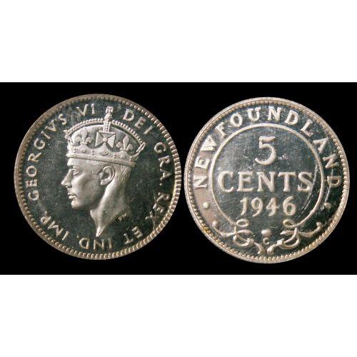 ONE OF THE FINEST KNOWN! NFLD 1946c 5¢ ICCS MS66 PQ+. Superb example with lovely CAMEO contrast. Wow! An amazing example of this very tough date. Excellent strike with clean fields and lovely mirror surfaces. The nicest example ever handled by TCNC. Expect strong bidding. Worth a premium bid. Only one finer