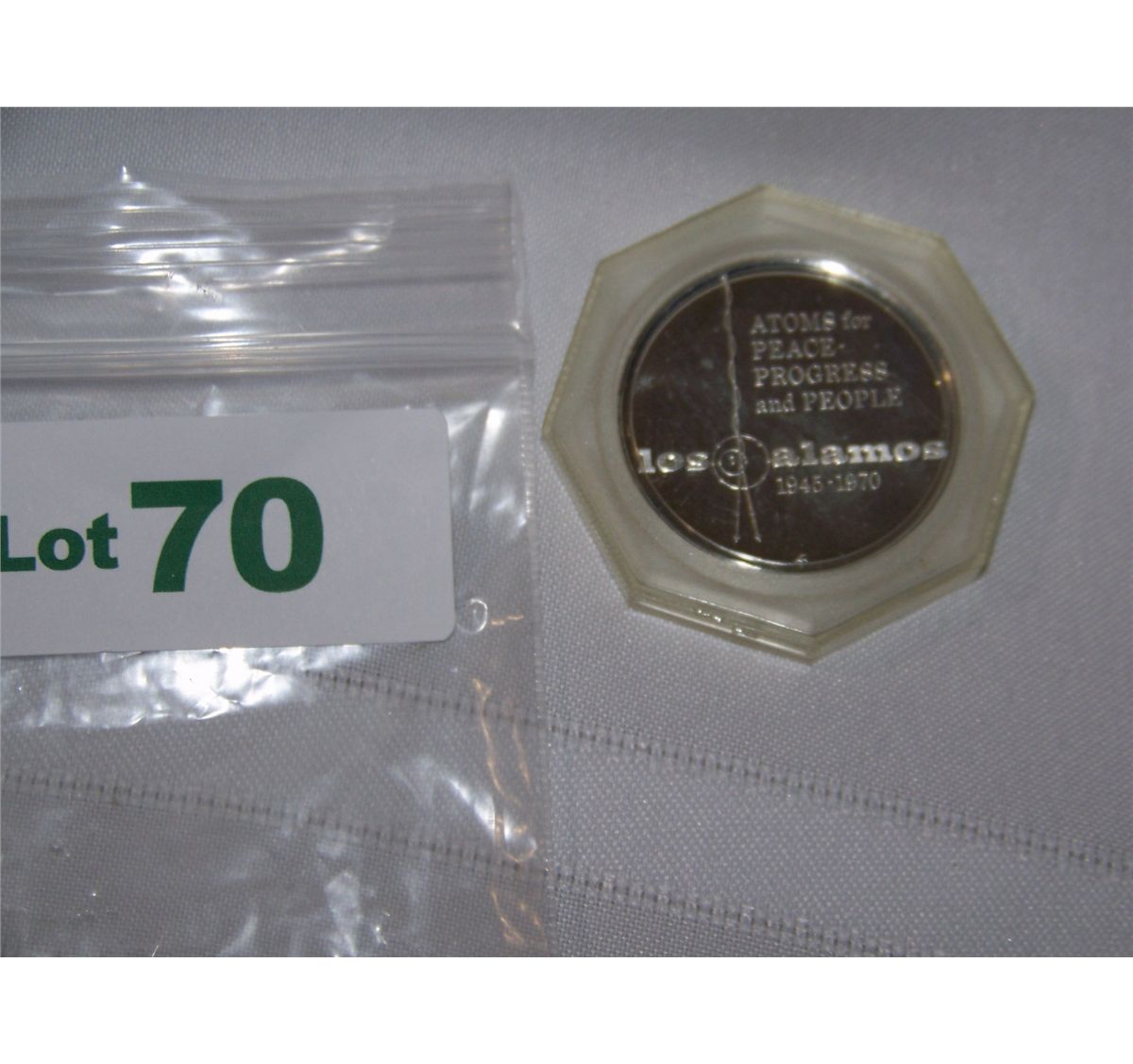 COIN READS "ATOMS FOR PEACE, PROGRESS & PEOPLE"