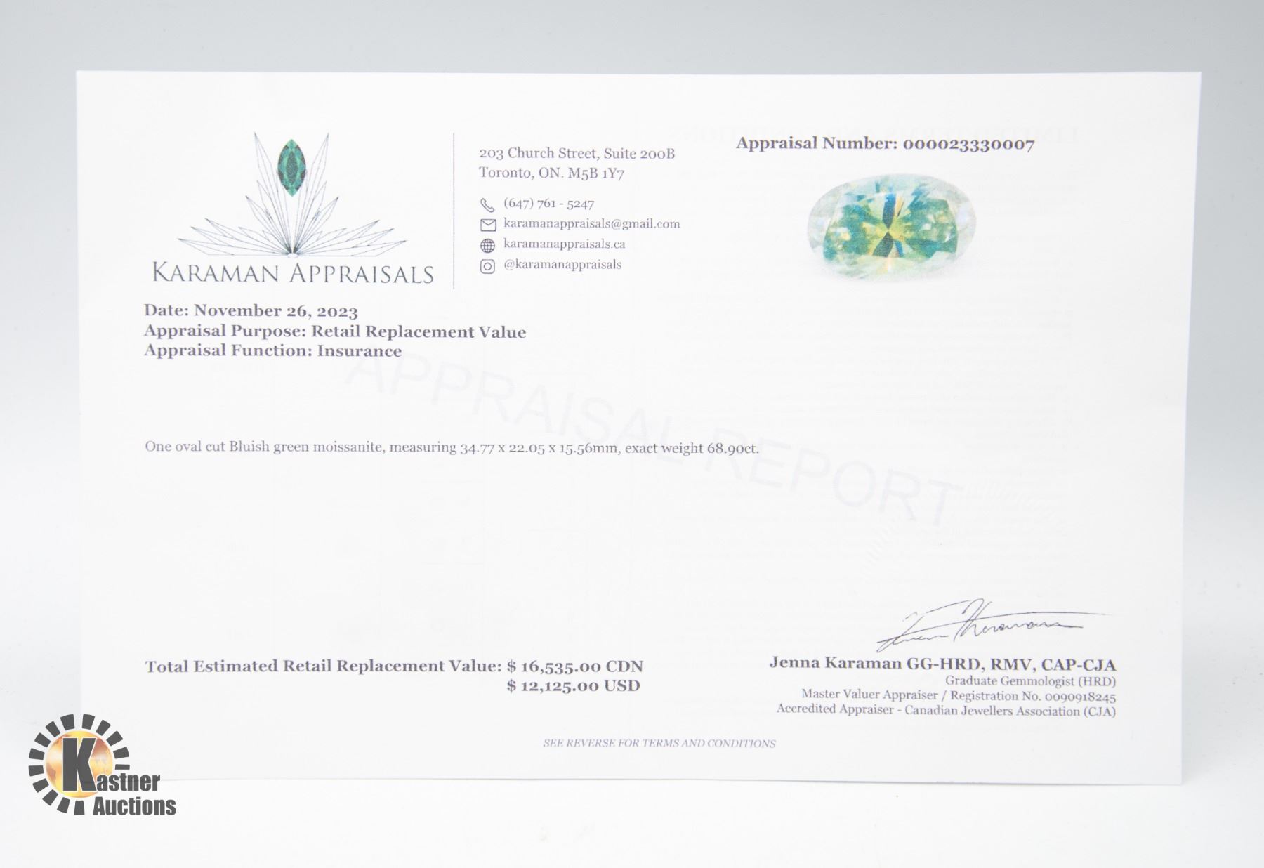 68.90 CARATS APPRAISED VALUE $16,535.00 **ALL ITEMS MUST BE REMOVED BY 5PM SATURDAY, DECEMBER 30TH 2023. ALL REMAINING ITEMS WILL BE SUBJECT TO A $6.00 PER DAY STORAGE CHARGE. ANY ITEMS REMAINING AFTER MONDAY, JANUARY 8TH, 2023 WILL BE CONSIDERED FORFEITED. NO REFUNDS WILL BE ISSUED FOR FORFEITED ITEMS. TO SCHEDULE A PICK UP APPOINTMENT CLICK HERE