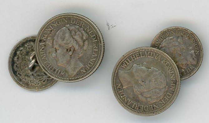 ONE PAIR OF SILVER CUFF LINKS MADE FROM SILVER COINS