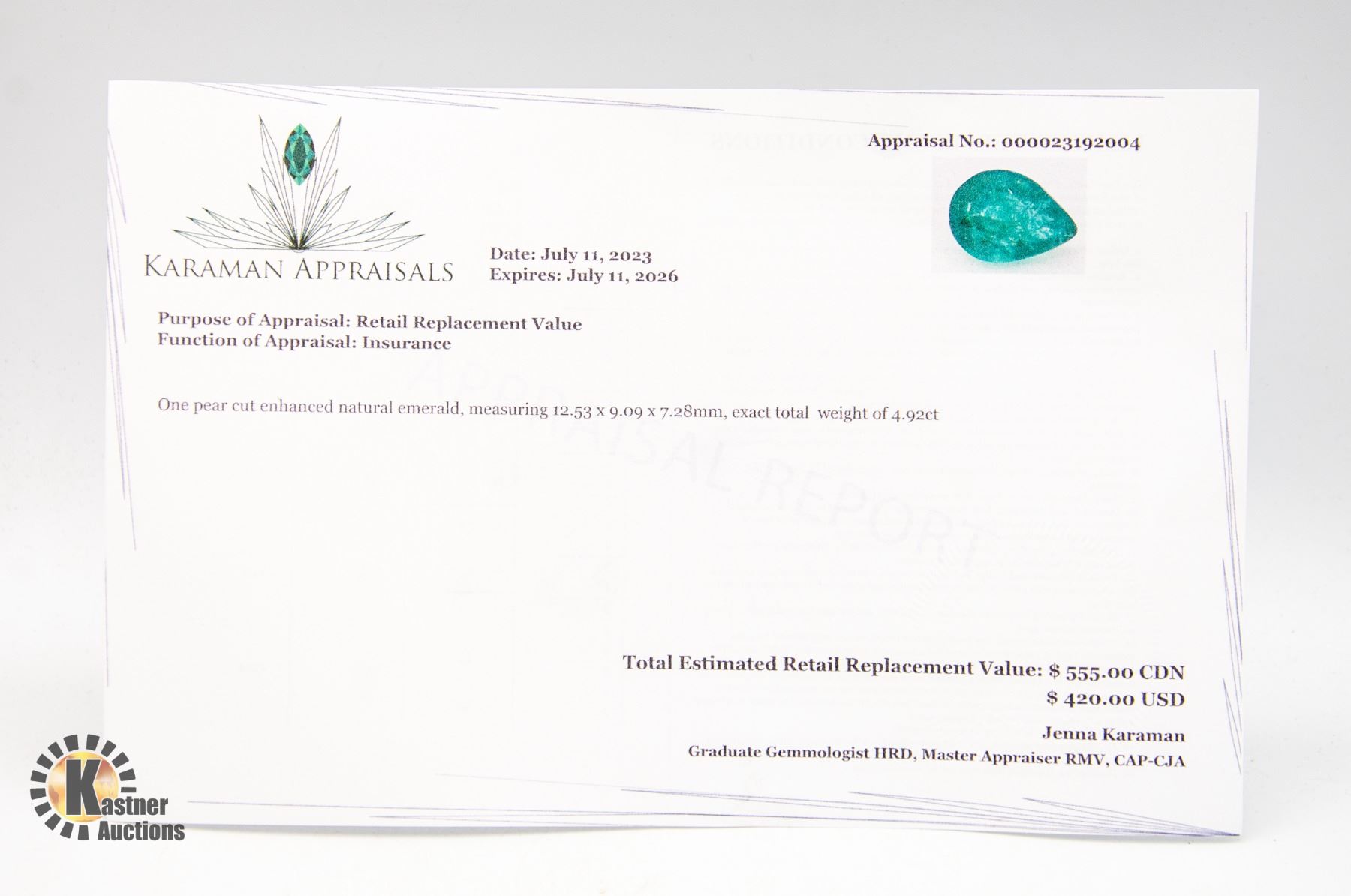WEIGHING 4.92 CARATS. APPRAISED VALUE $555.00 **ALL ITEMS MUST BE REMOVED BY 5PM SATURDAY, OCTOBER 14TH 2023. ALL REMAINING ITEMS WILL BE SUBJECT TO A $6.00 PER DAY STORAGE CHARGE. ANY ITEMS REMAINING AFTER MONDAY, OCTOBER 30TH, 2023 WILL BE CONSIDERED FORFEITED. NO REFUNDS WILL BE ISSUED FOR FORFEITED ITEMS. TO SCHEDULE A PICK UP APPOINTMENT CLICK HERE