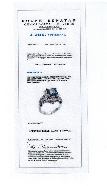ONE SQUARE CUT TANZANITE TW 2.05CTS, 0.87CTS TW ROUND CUT DIAMONDS