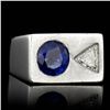 ONE TRILLION CUT DIAMOND 0.60CT, ONE NATURAL SAPPHIRE 1.50CT, PLATINUM RING 19.65GR