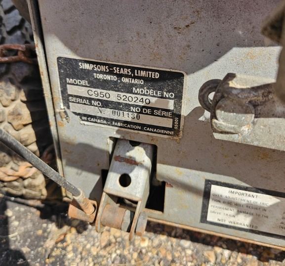 MODEL C950 520240 RUNS NEEDS TUNE UP (ONSITE) 5134-EVERETT RD SANDY BEACH ALBERTA - MUST BE REMOVED BY WEDNESDAY 5PM - ALL REMAINING ITEMS WILL BE CONSIDERED FORFEITED WITH NO REFUND WHAT SO EVER **ALL ITEMS MUST BE REMOVED BY 5PM SATURDAY, JULY 5TH 2025. ALL REMAINING ITEMS WILL BE SUBJECT TO A $6.00 PER DAY STORAGE CHARGE. ANY ITEMS REMAINING AFTER MONDAY, JULY 21ST 2025 WILL BE CONSIDERED FORFEITED. NO REFUNDS WILL BE ISSUED FOR FORFEITED ITEMS. TO SCHEDULE A PICK UP APPOINTMENT CLICK HERE