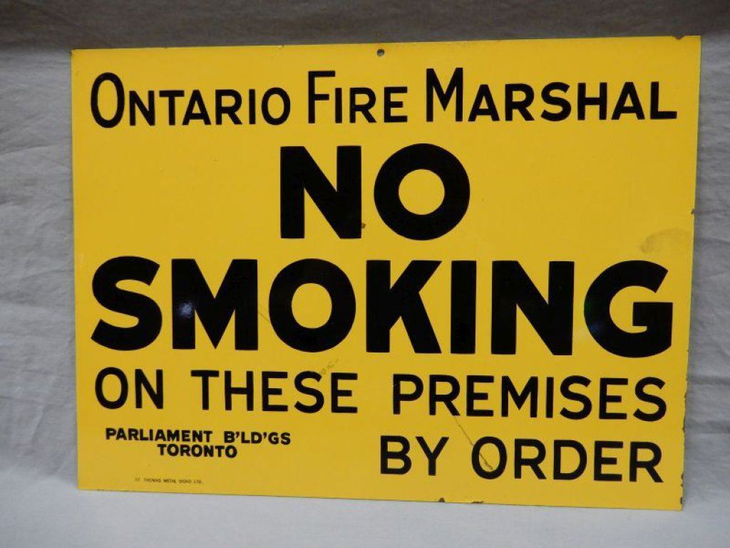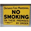 ONTARIO FIRE MARSHAL NO SMOKING SST SIGN ST. THOMAS METAL SIGN LTD 13 1/2" X 10" LOCATION: UPPER RIGHT