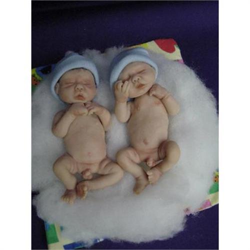 OOAK Artist Polymer Twins, Mint. 2 very sweet twin boys measuring 5 3/4 in X 2 3/4 in created by Theresa Deppe in polymer medium. They are anatomically correct and have black wispy hair. They come with a flaannel blanket and blue knitted cap.Close attention has been paid to every detail. These twins are one of a kind and make a great addition to your doll collection!