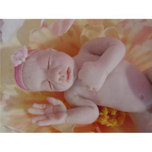 OOAK Polymer Artist Spring Baby In Flower, Mint, COA. One of a kind, 3 1/2inches long baby sculpted in polymer with nice detailed hands and feet. Sculpted by Diane Ackers Frasure. Blossom Baby series comes with certificate of authenticity. (Item #80000239)