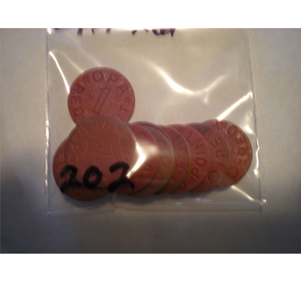 OPA Red Point Tokens x10 - This is a random selection of OPA Red Points***Coin, Currency, Gemstones & All Items Listed in this auction along with their respective Grades, Conditions and Values are not T&T Auctions Responsibility. Every person has their own opinion. It is the responsibility of the buyer to examine, grade and value each item in this auction to their own satisfaction before they bid. Bidders shall rely entirely on their own inspection and information before bidding.
