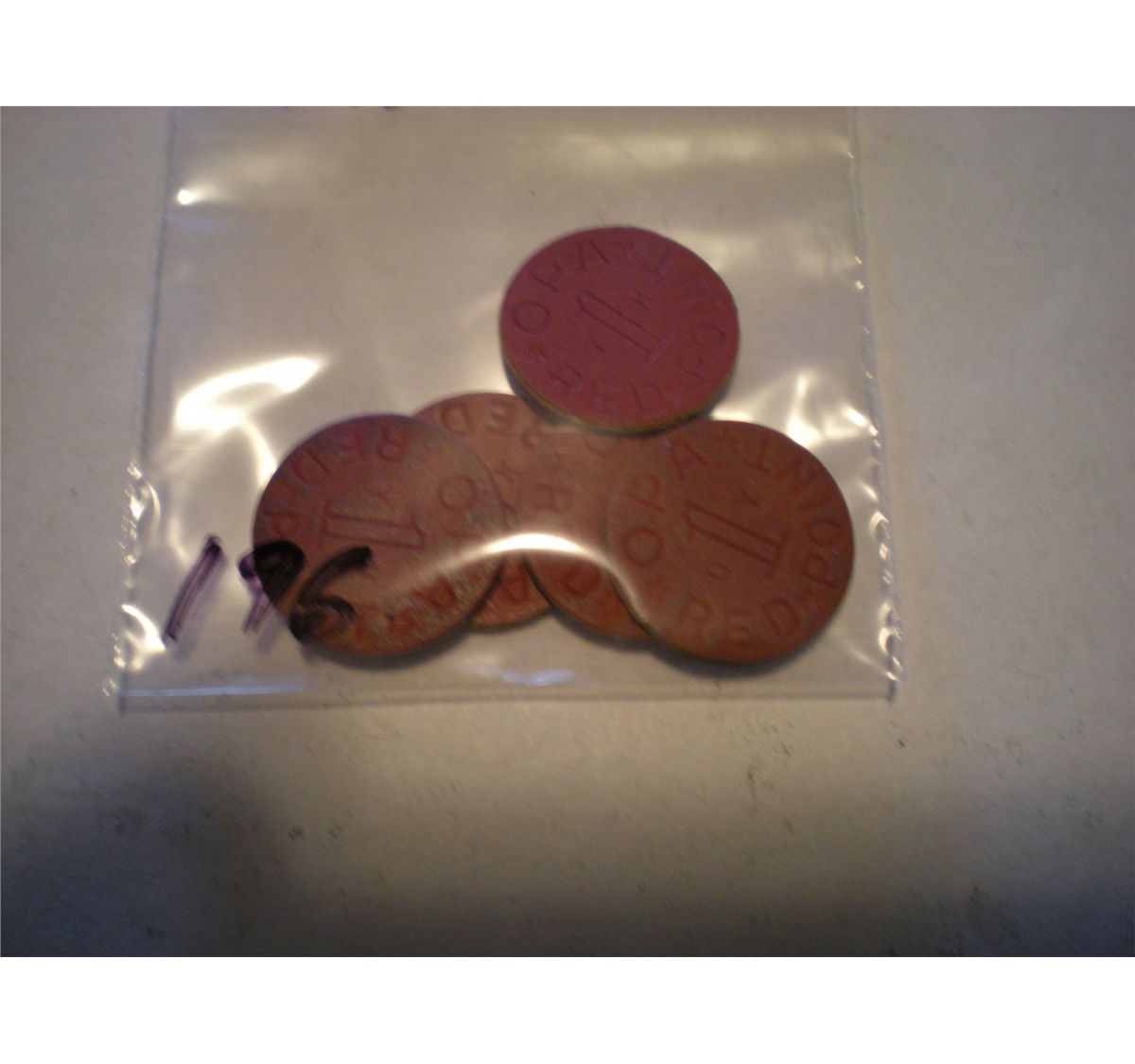 OPA Red Point Tokens x5 - This is a random selection of OPA Red Points***Coin, Currency, Gemstones & All Items Listed in this auction along with their respective Grades, Conditions and Values are not T&T Auctions Responsibility. Every person has their own opinion. It is the responsibility of the buyer to examine, grade and value each item in this auction to their own satisfaction before they bid. Bidders shall rely entirely on their own inspection and information before bidding.
