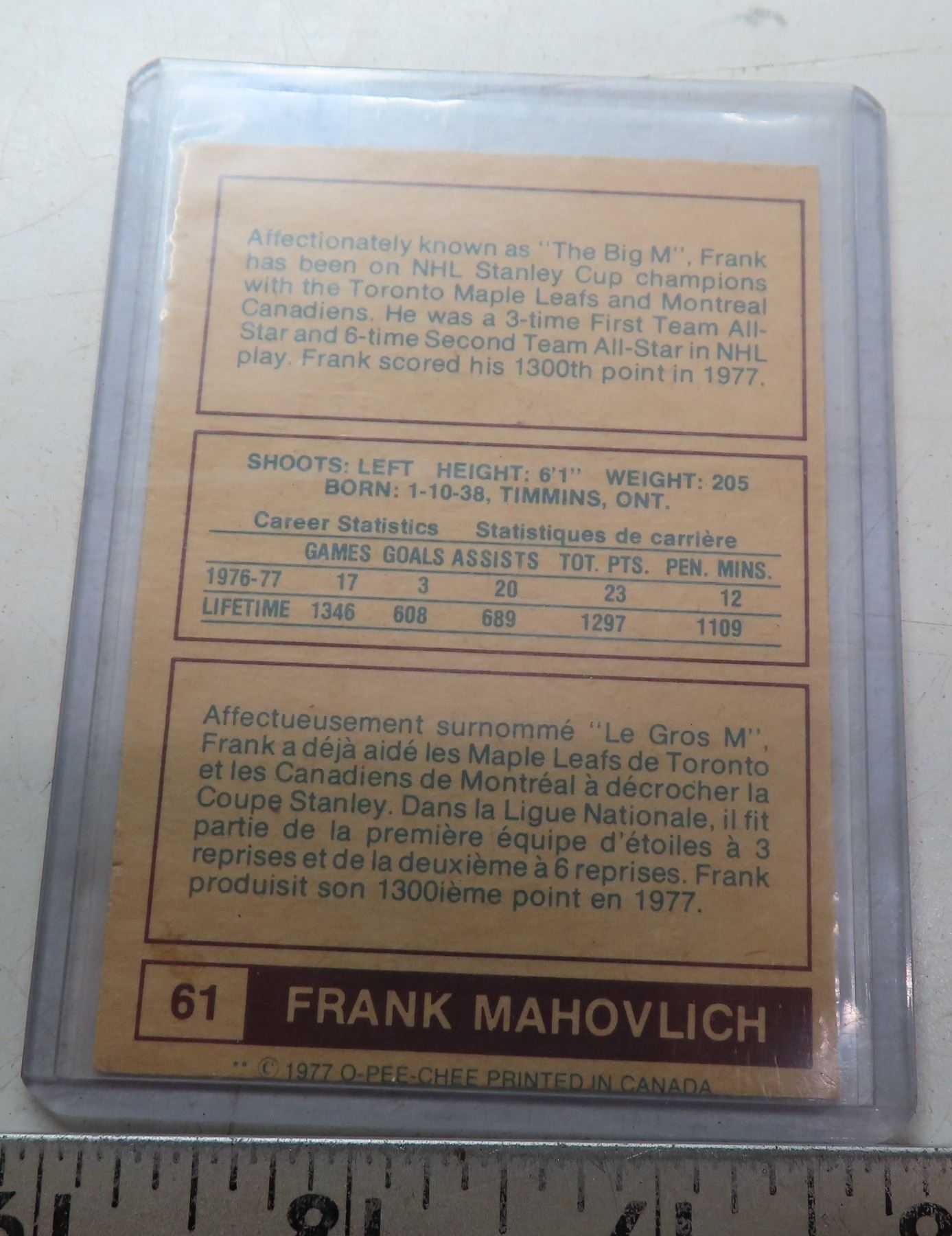 OPC W.H.A 1977-78 Frank mahovlich #61 bulls "auti-graph card"